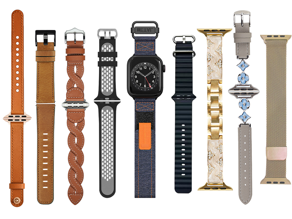 Support for Apple Watch, Samsung, Xiaomi, and Huawei smartwatches, with multiple popular strap options to choose from.