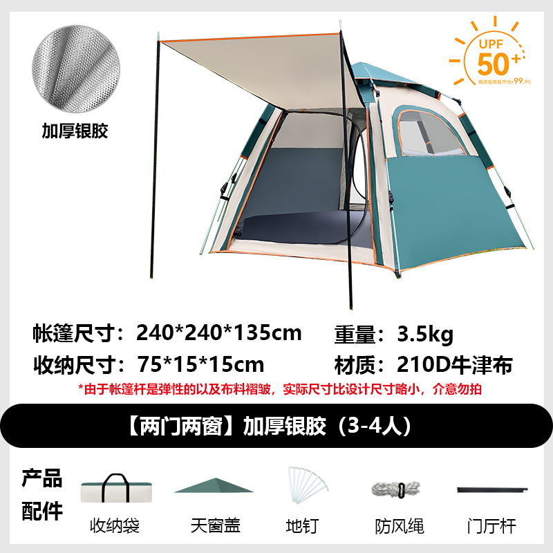 Cross-Border Camping Tent, Outdoor No-Setup Automatic Quick-Opening Picnic Portable Folding Camping Equipment Tent