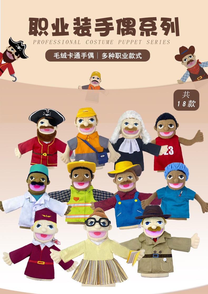 Hand puppet toy role-playing parent-child interaction professional figure hand puppet mouth movable plush toy cross-border hot sale