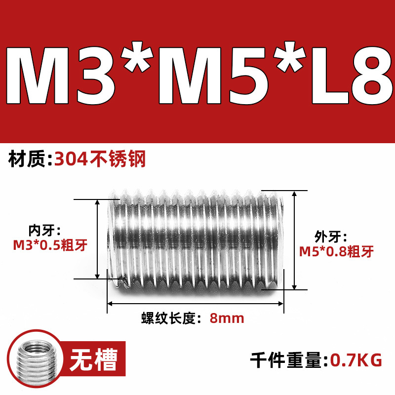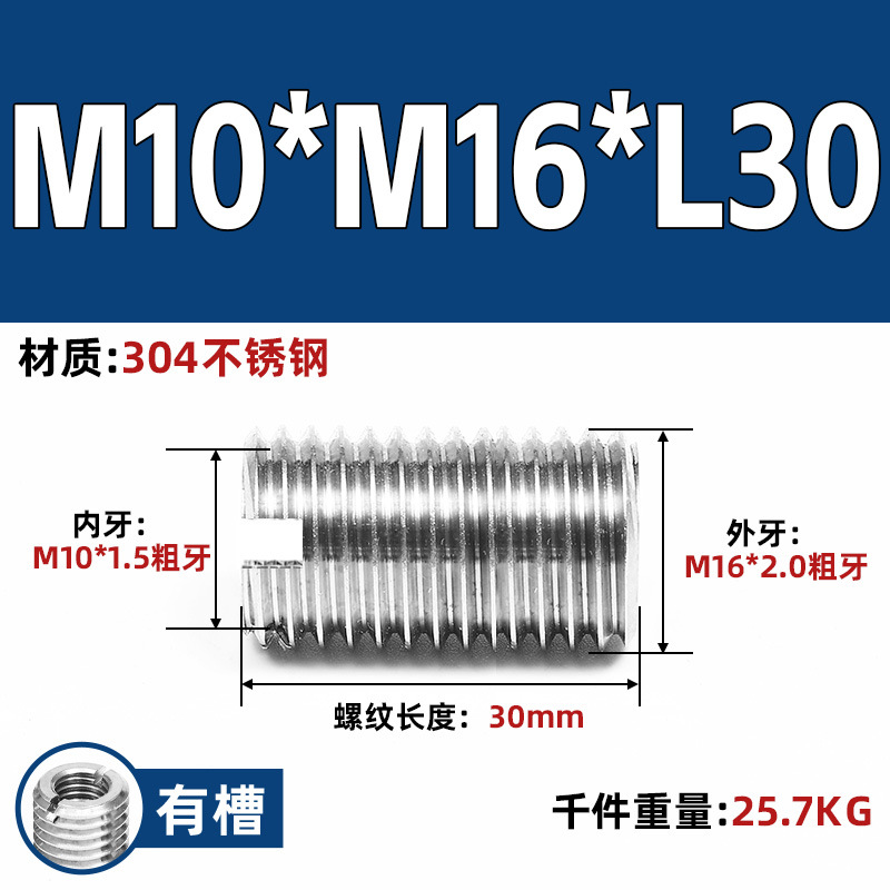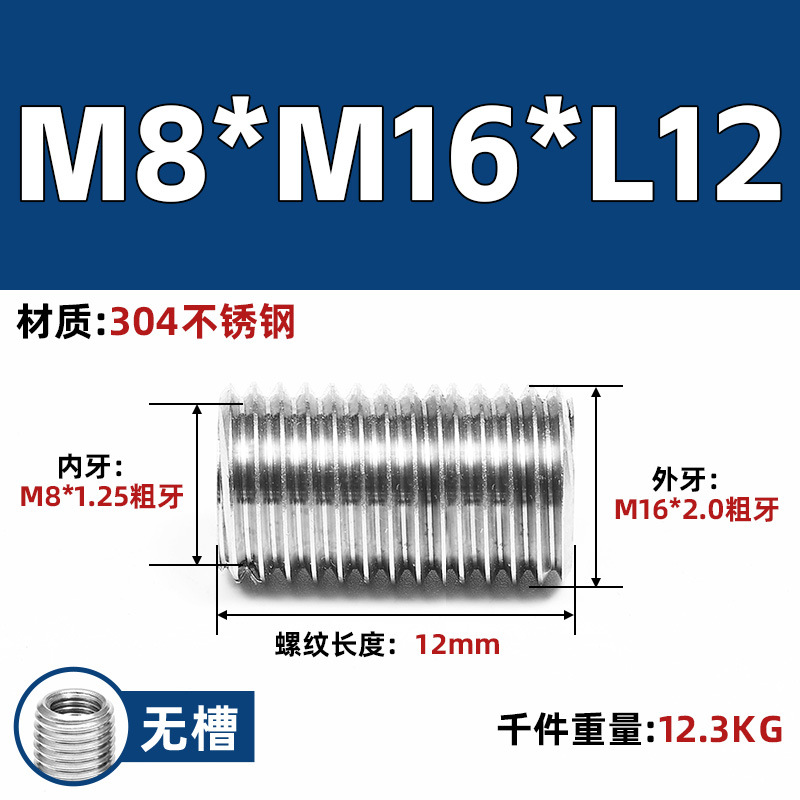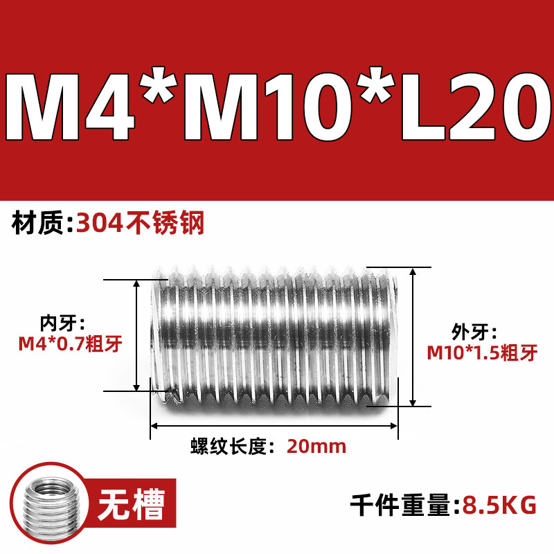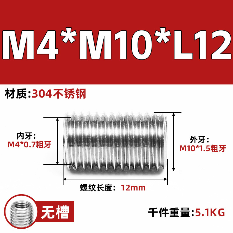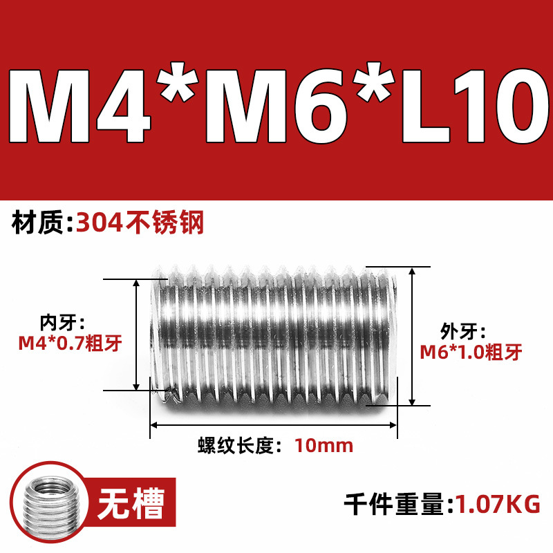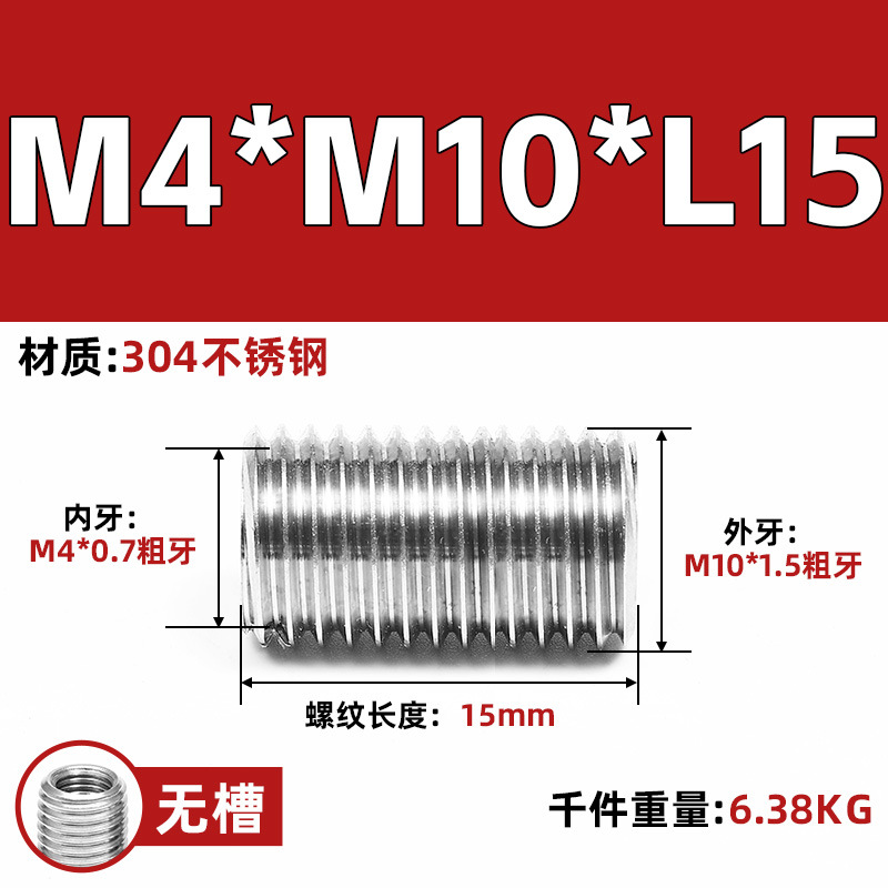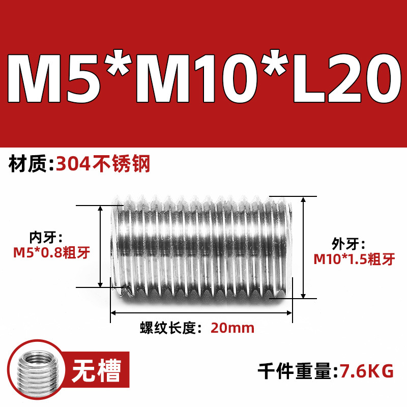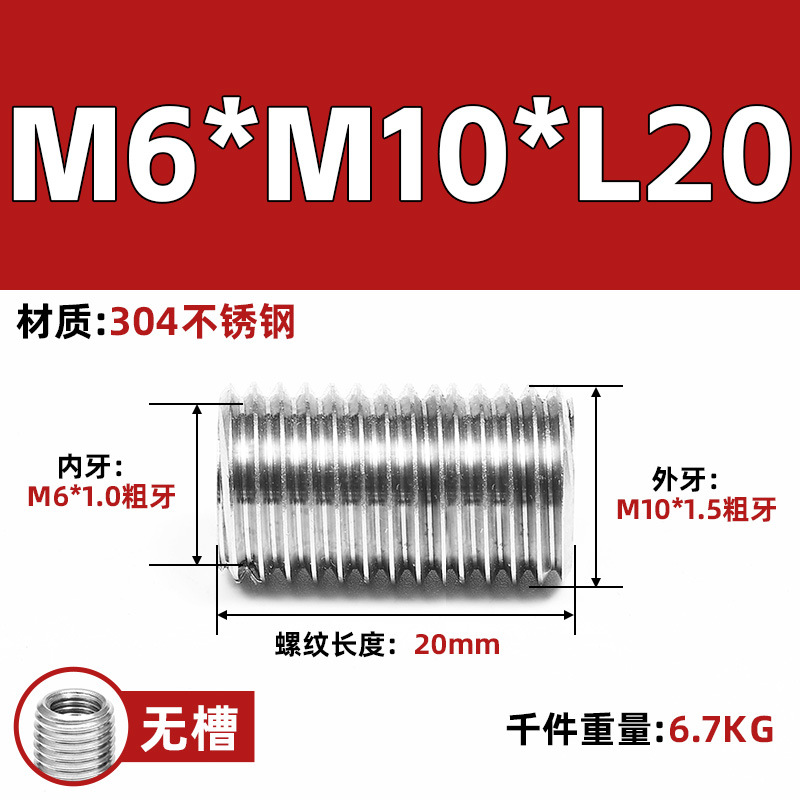 Internal and External Thread Nut Stainless Steel 304 Thread Conversion Non-Standard Screw Internal and External Thread Conversion Sleeve Reducing Thread Braces