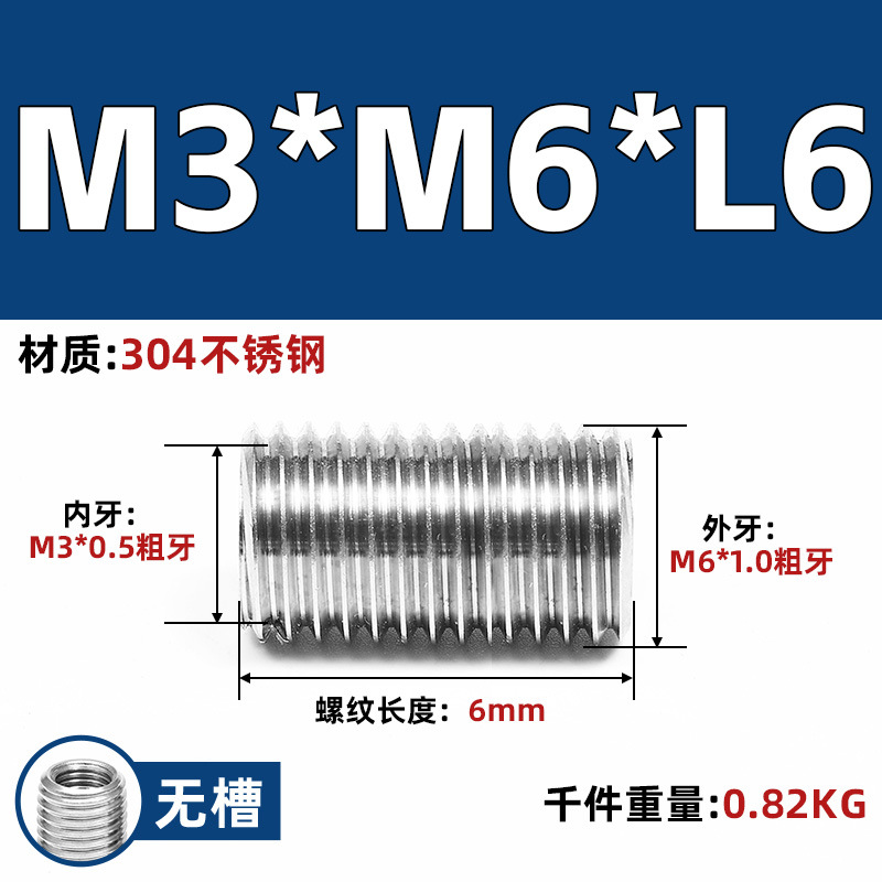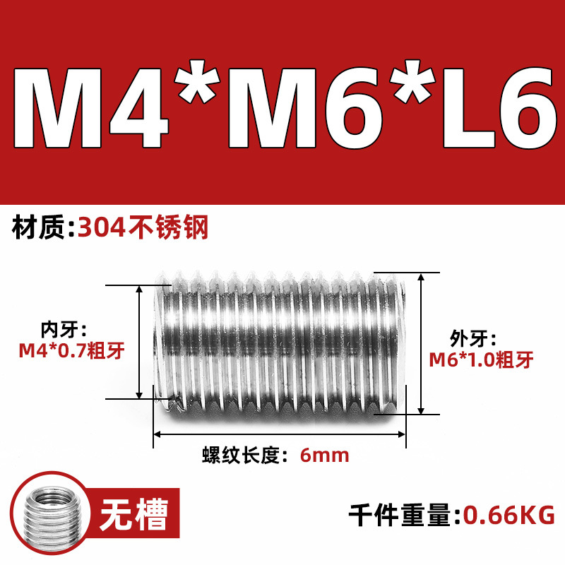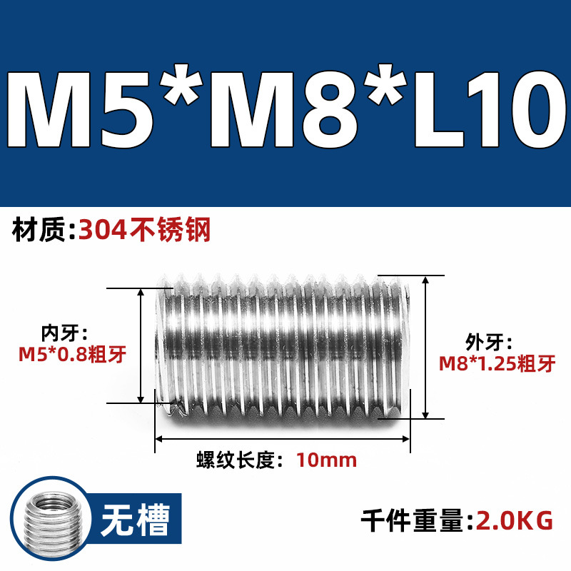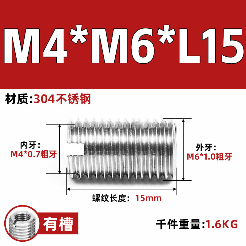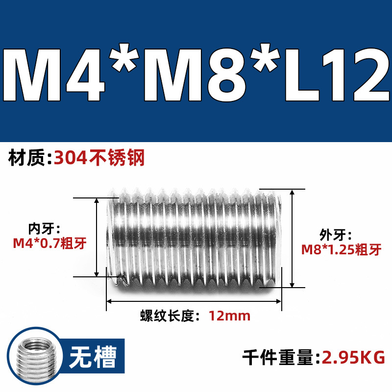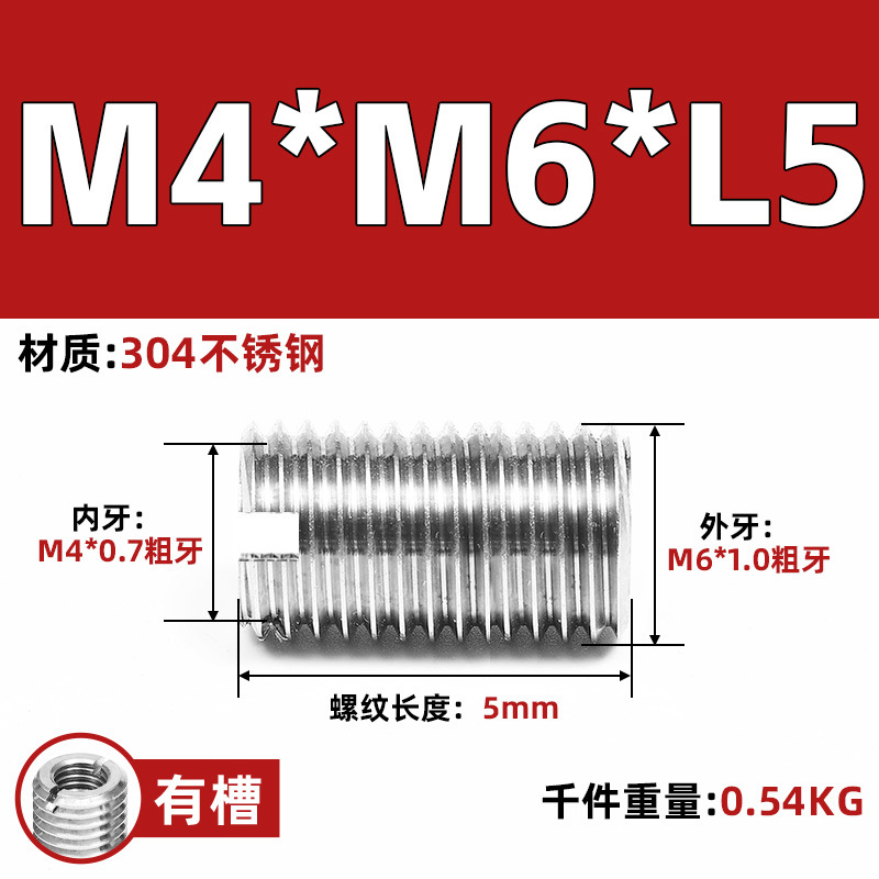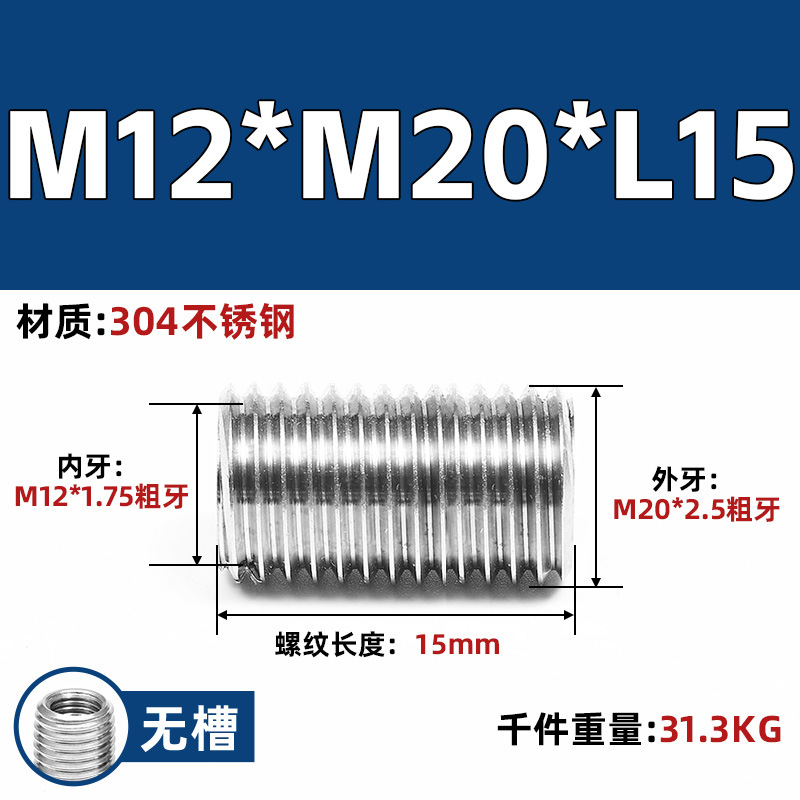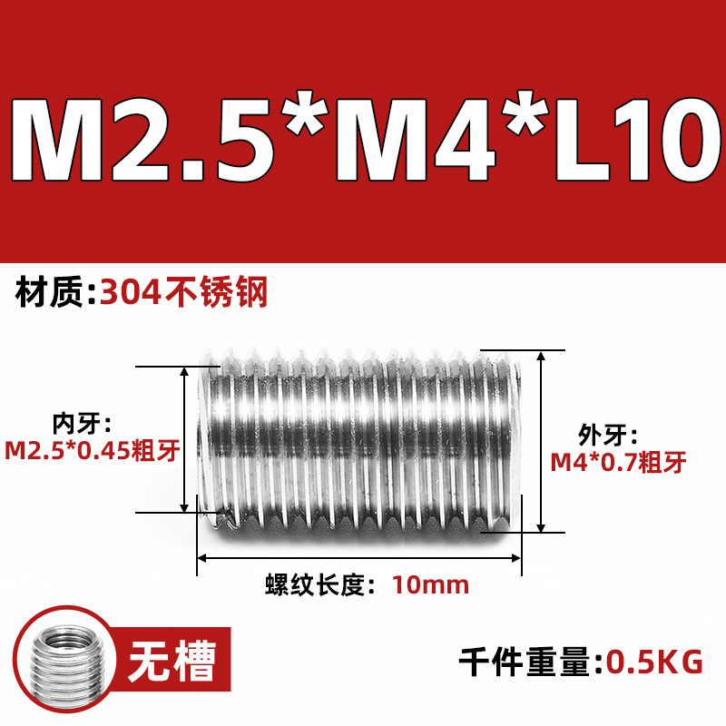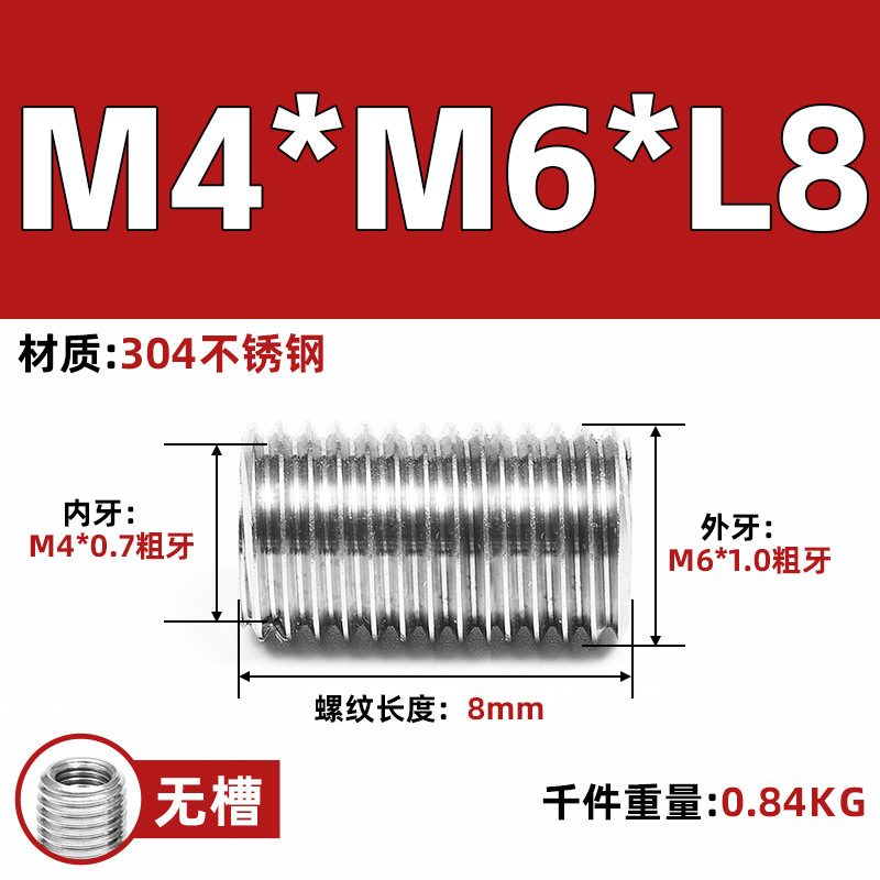 Internal and External Thread Nut Stainless Steel 304 Thread Conversion Non-Standard Screw Internal and External Thread Conversion Sleeve Reducing Thread Braces