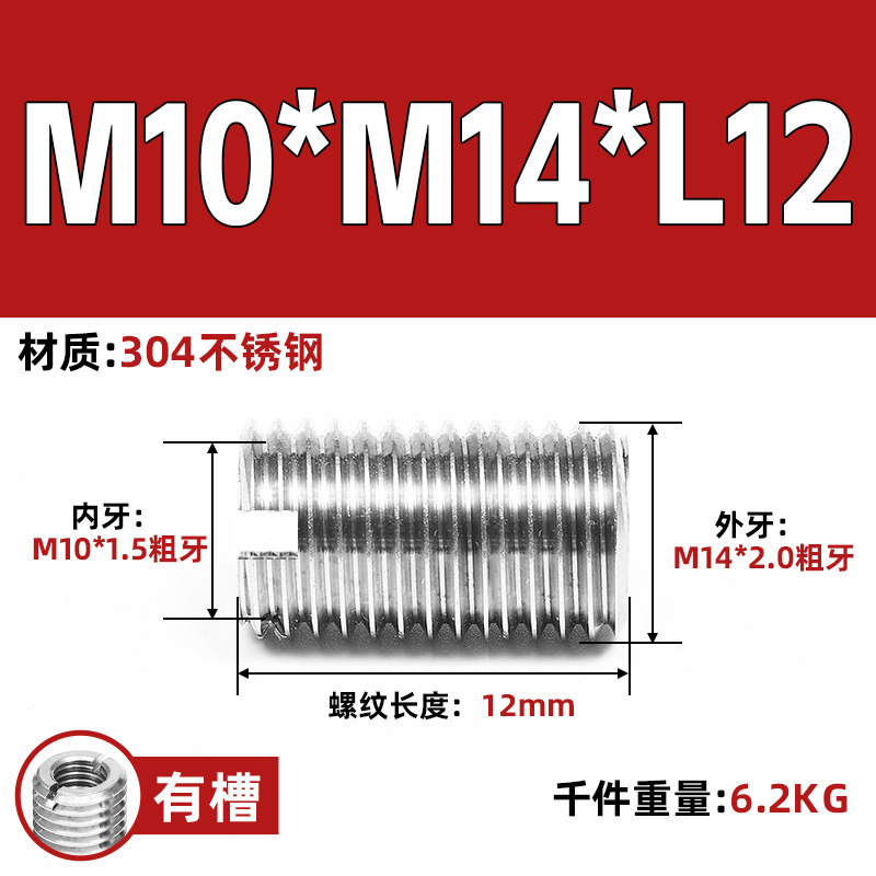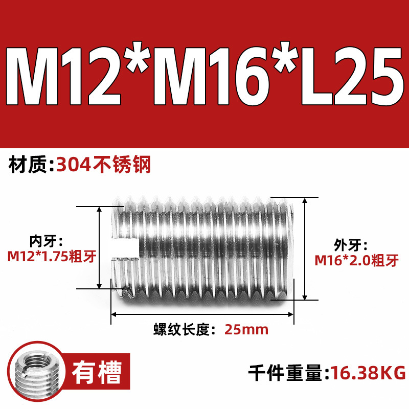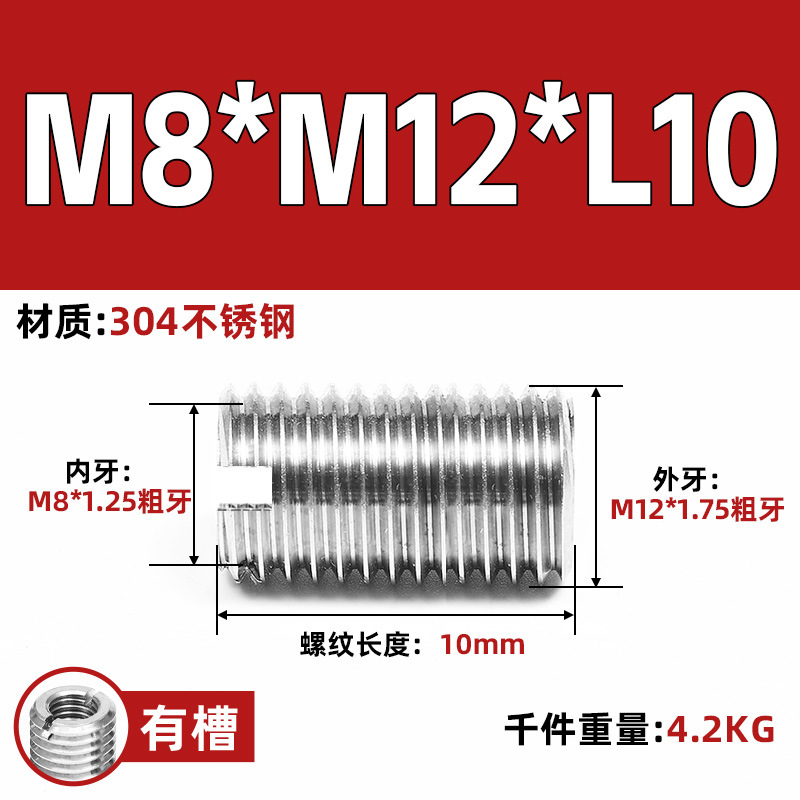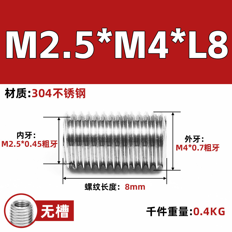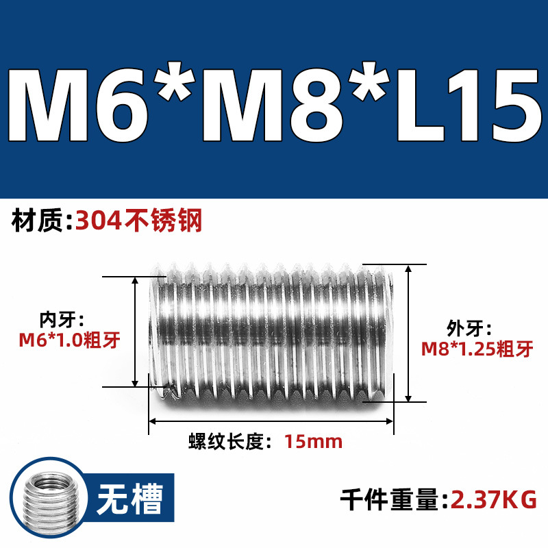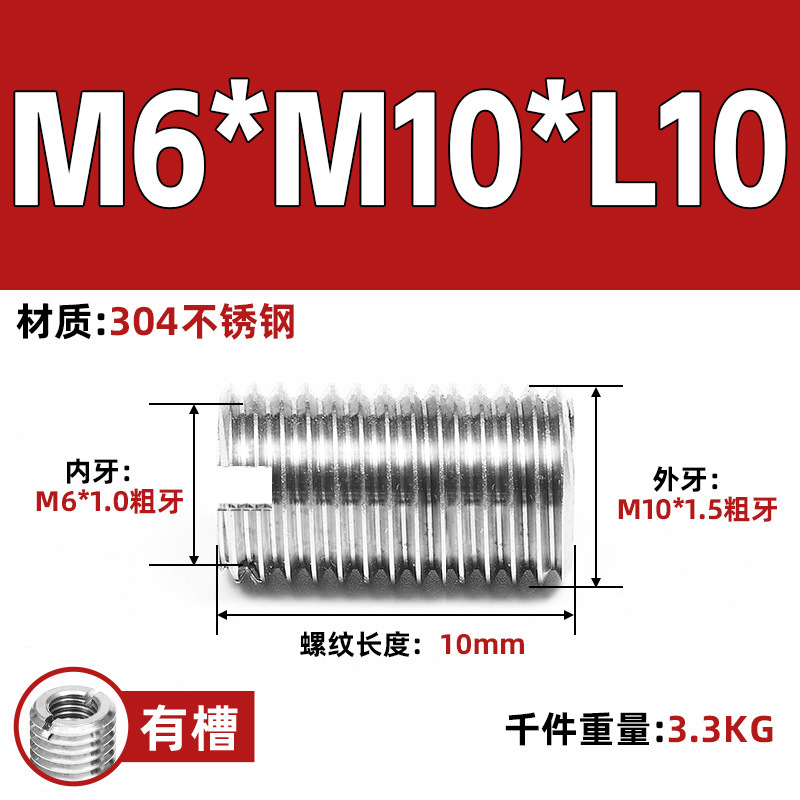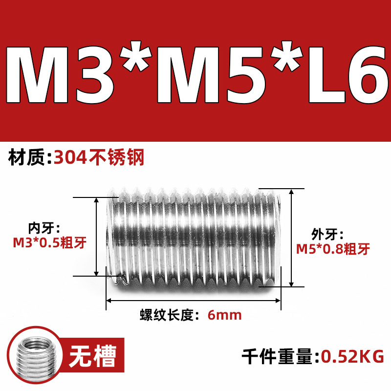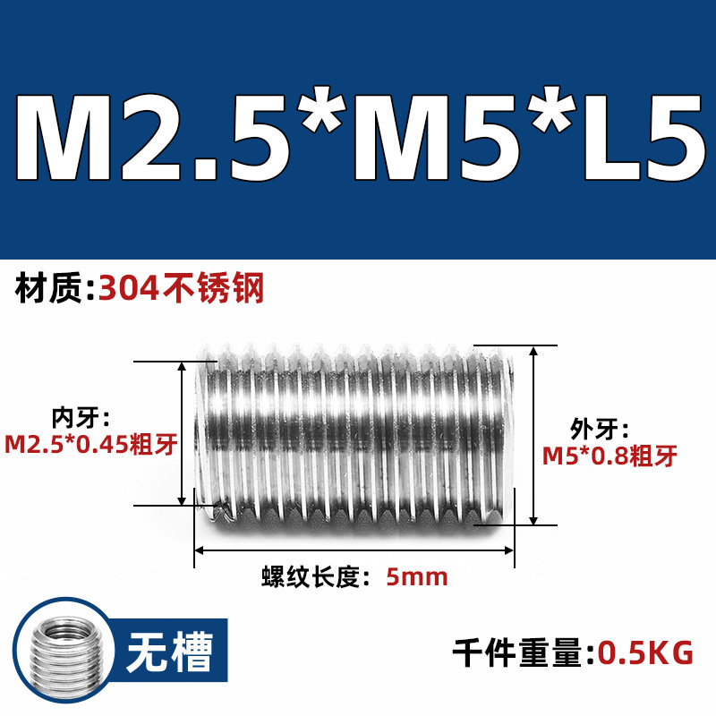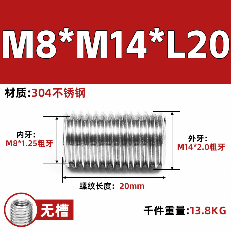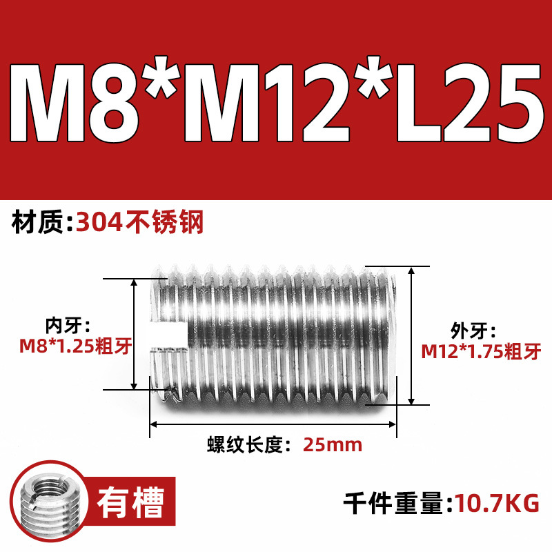 Internal and External Thread Nut Stainless Steel 304 Thread Conversion Non-Standard Screw Internal and External Thread Conversion Sleeve Reducing Thread Braces