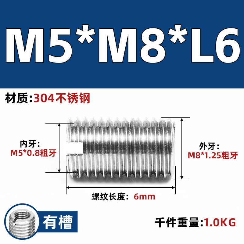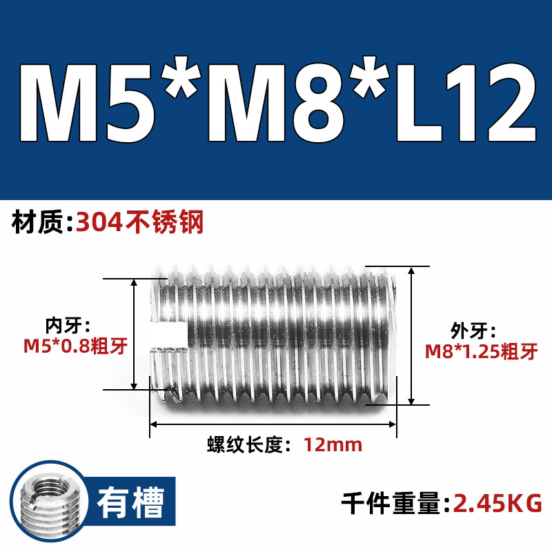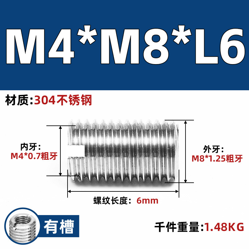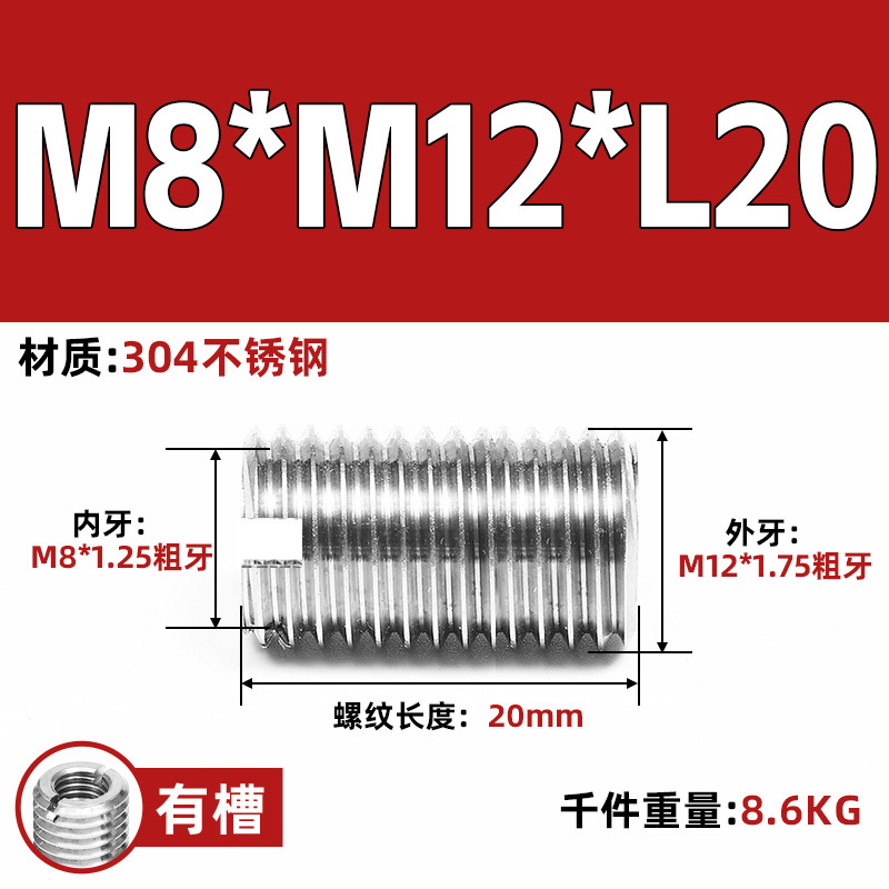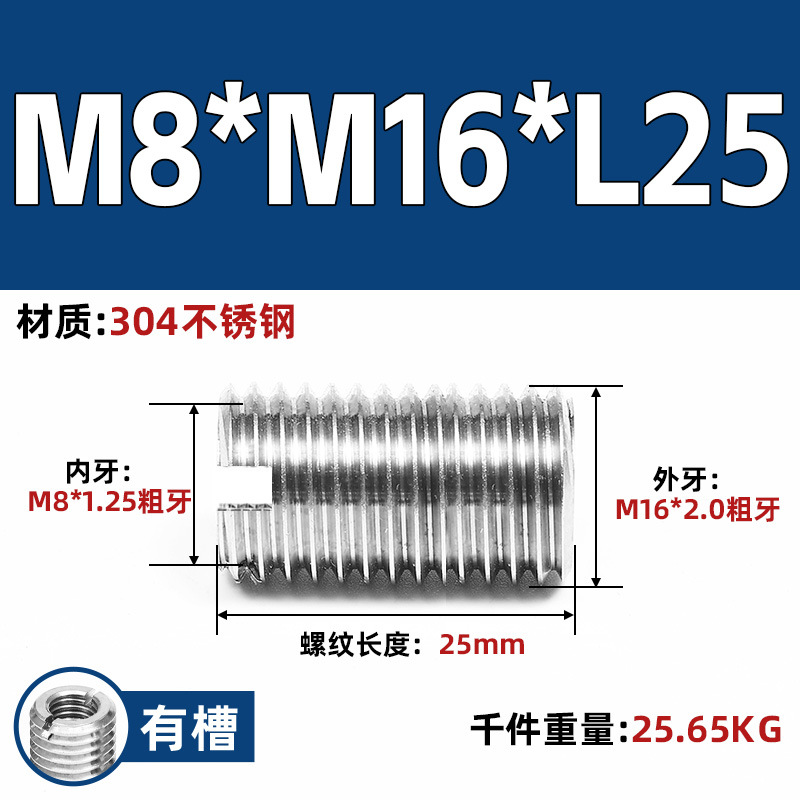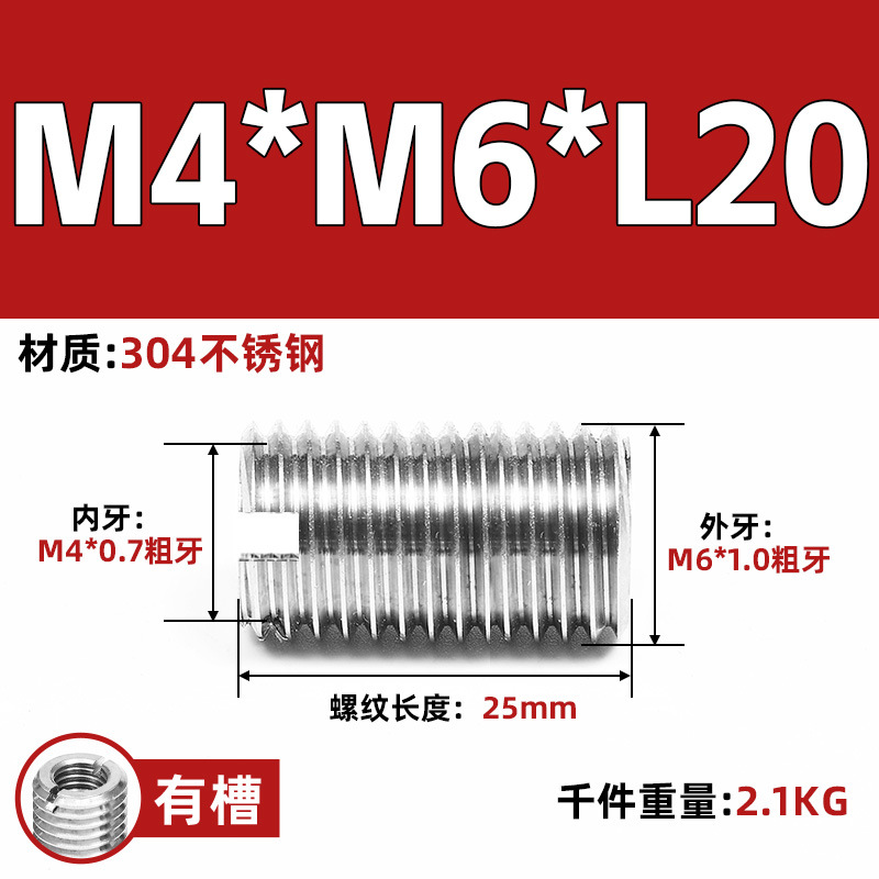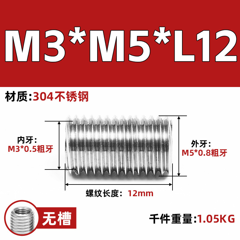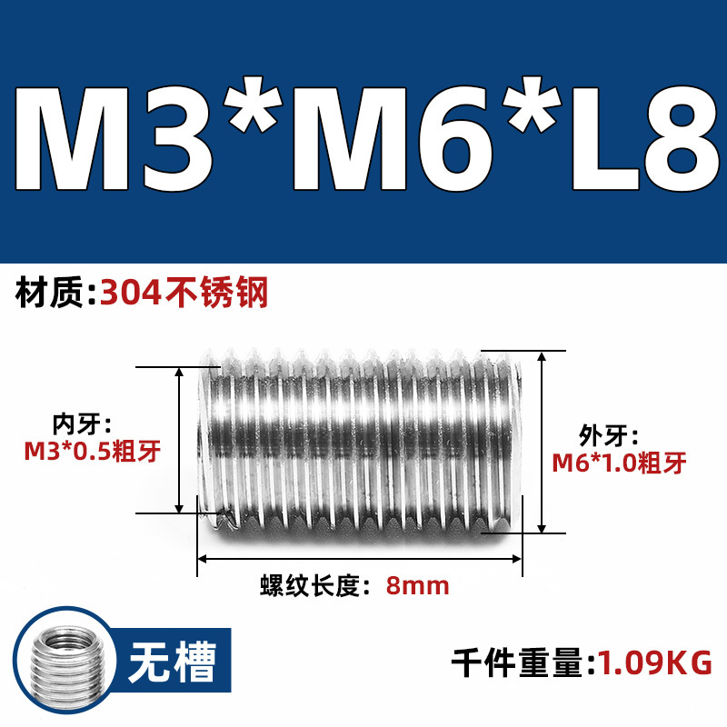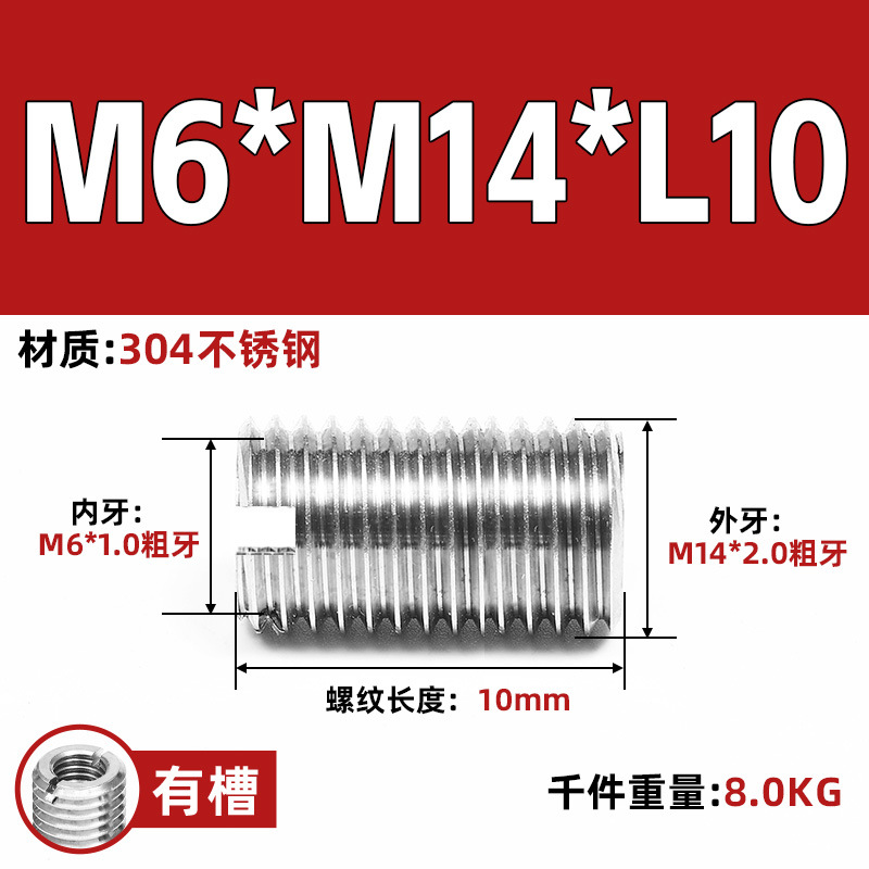Internal and External Thread Nut Stainless Steel 304 Thread Conversion Non-Standard Screw Internal and External Thread Conversion Sleeve Reducing Thread Braces