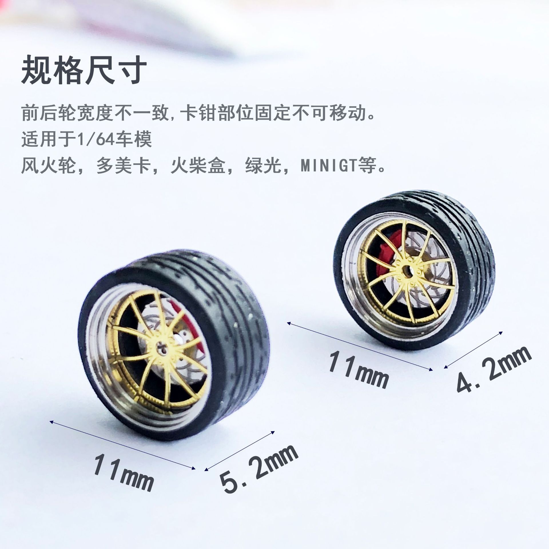 Hot Wheel duomei green light available 1/64 modified wheel caliper wheel hub with brake disc rubber tire 1:64