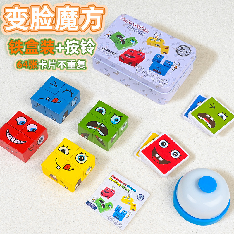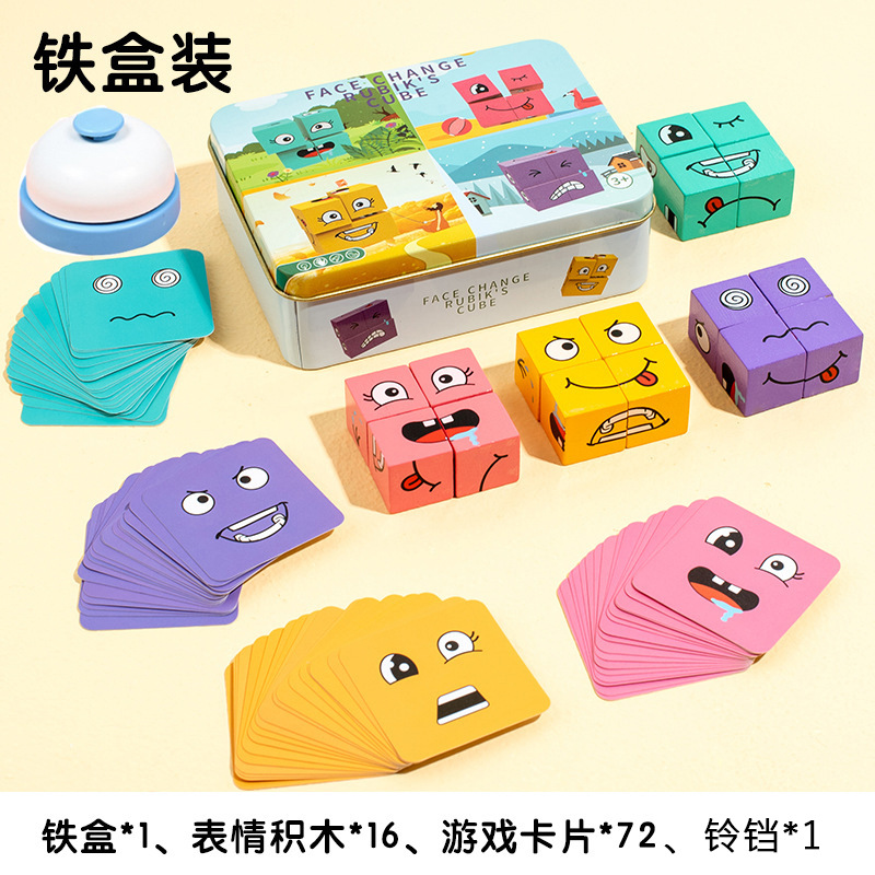 Children's Face-changing Rubik's Cube Building Blocks Educational Toys Parent-child Interactive Desktop Battle Game Wooden Smiley Pattern Rubik's Cube