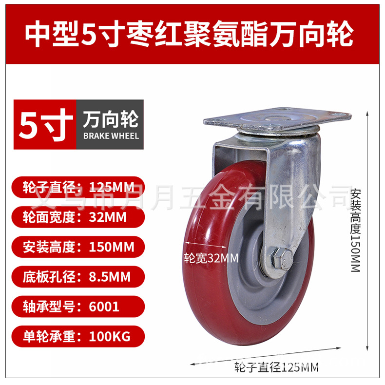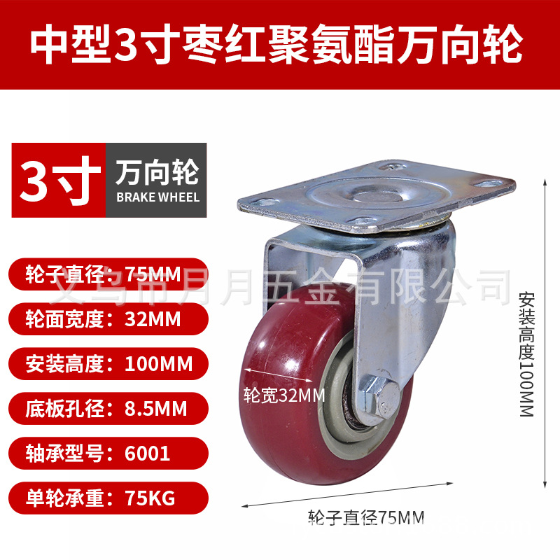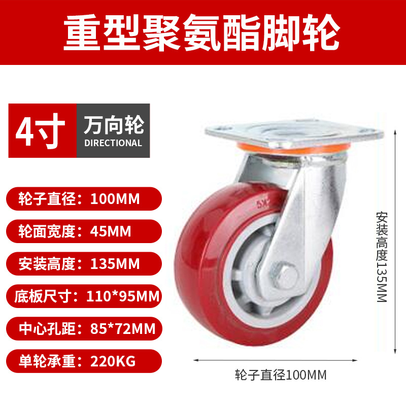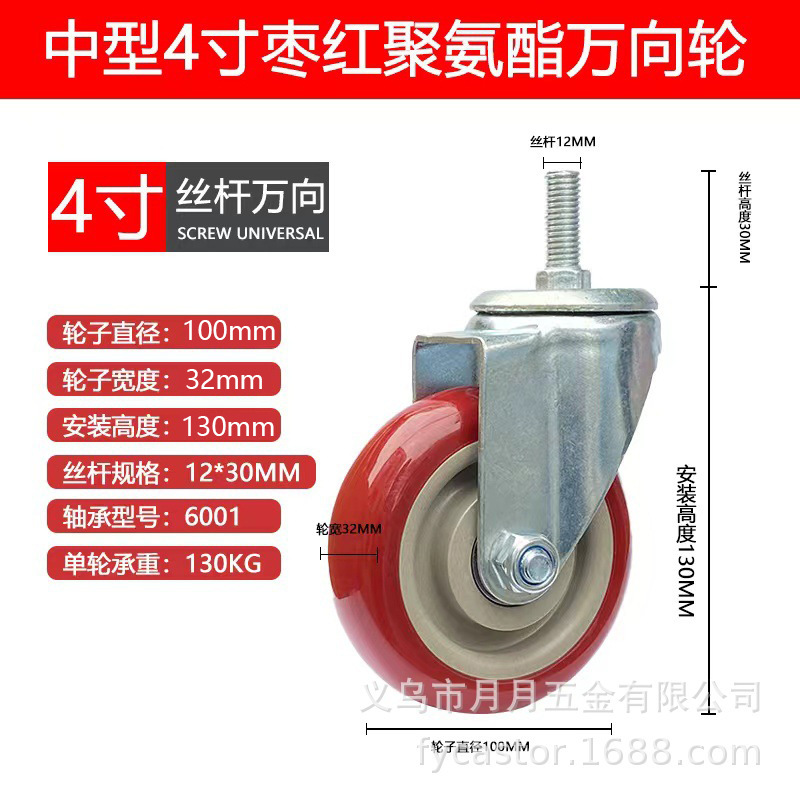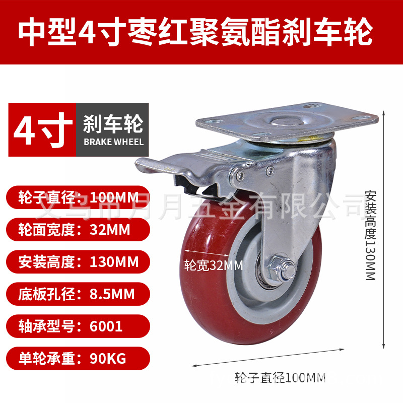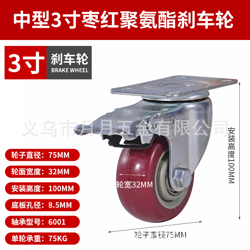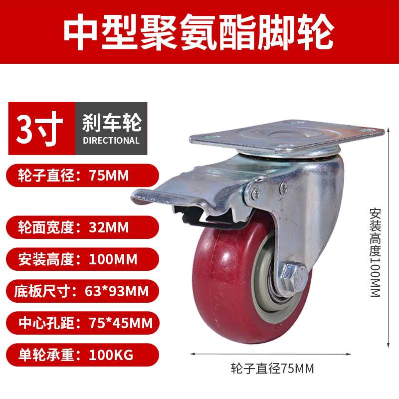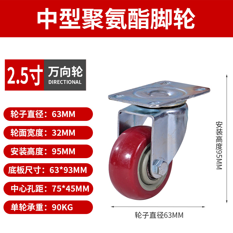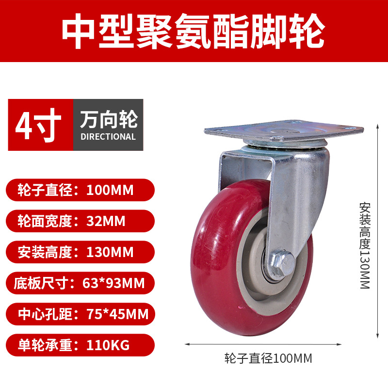 Caster Medium Size 3 Inches 4inch 5inch Polyurethane Silent Wheel Stroller Set Universal Wheel Shelf Heavy Duty Wheel Pulley