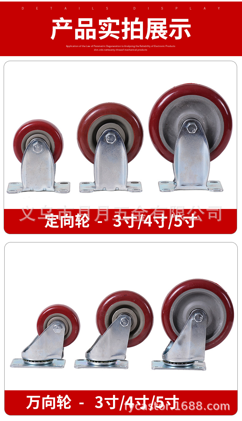 2.5 inch Bordeaux directional 2.5 inch Bordeaux Universal 2.5 inch Bordeaux Universal with brake 3 inch Bordeaux directional 3 inch Bordeaux Universal 3 inch Bordeaux Universal with brake 4 inch Bordeaux directional 4 inch Bordeaux Universal 4 inch Bordeaux Universal with brake 5 inch Bordeaux directional 5 inch Bordeaux Universal 5 inch Bordeaux Universal with brake Screw Rod 3 inch universal 12*30 3 inch screw brake 12*30 Screw rod 4 inch universal 12*30 4 inch screw brake 12*30 Expansion pipe caster 3 inch Universal Expansion tube caster 3 inch brake Expansion pipe caster 4 inch Universal Expansion tube caster 4 inch brake 3 inch Bordeaux single wheel 4 inch Bordeaux single wheel 5 inch Bordeaux single wheel Heavy duty 4inch directional Heavy duty 4-inch universal Heavy duty 4-inch universal with brake Heavy duty 5inch directional Heavy duty 5 inch universal Heavy duty 5 inch universal with brake Heavy duty 6inch directional Heavy duty 6 inch universal Heavy duty 6 inch universal with brake Heavy duty 8inch directional Heavy duty 8-inch universal Heavy duty 8-inch universal with brake
