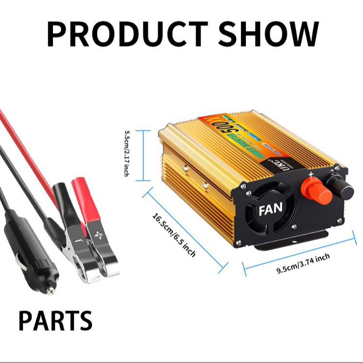 Power Inverter Car Inverter 12V 500W Power Converter Correction Sine Wave Inverter