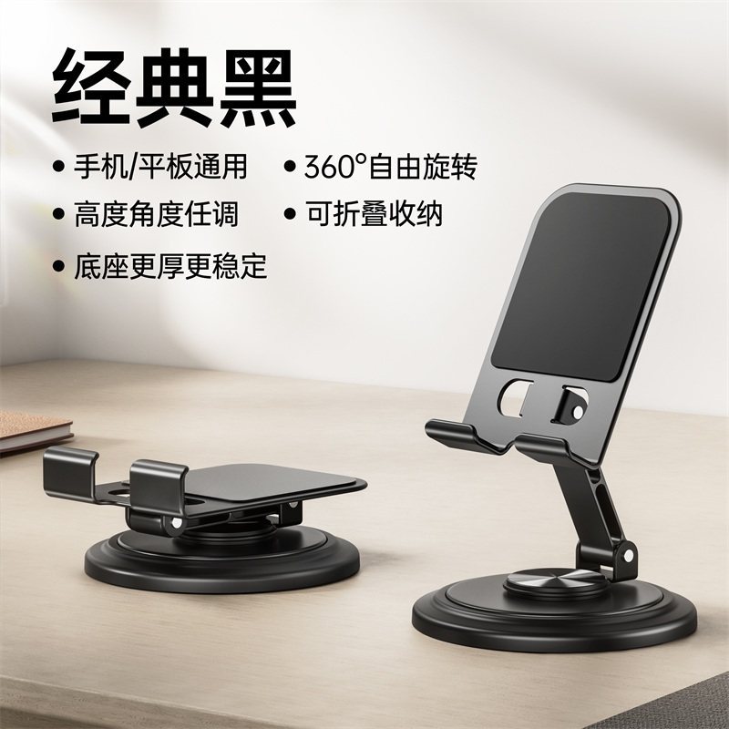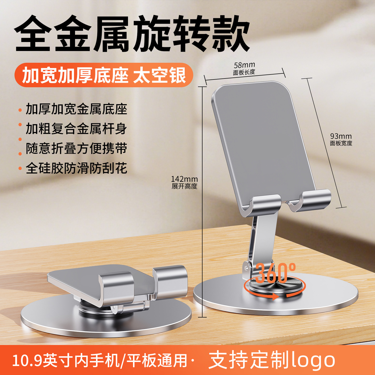 Mobile Phone Stand Desktop Portable Lazy Live Streaming Aluminum Alloy Phone Holder Foldable 360-Degree Rotating Metal Tablet Stand