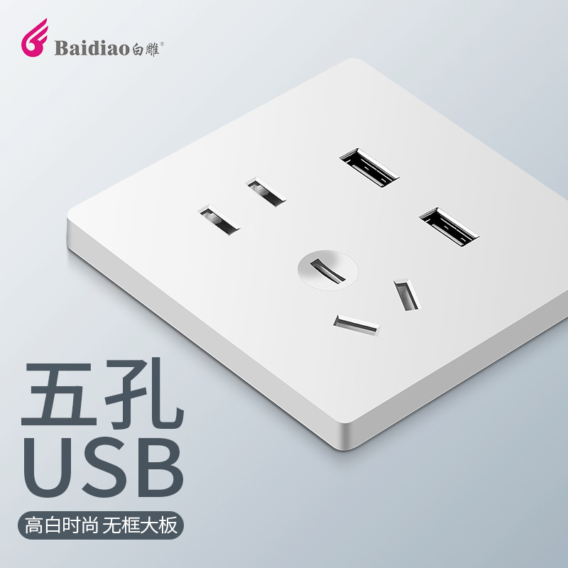 Wholesale 86 Type Wall Switch Socket Panel, Concealed Installation, Single-Gang, Five-Hole, USB 16A, Air Conditioner, Computer, National Standard Certification