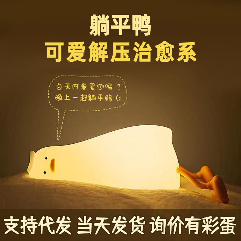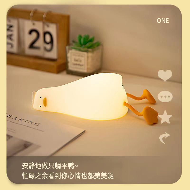 Lying Flat Duck Night Light Bedroom Sleep Gift Nursing Bedside Lamp Silicone Pat Light Led Lamp Creative Cartoon