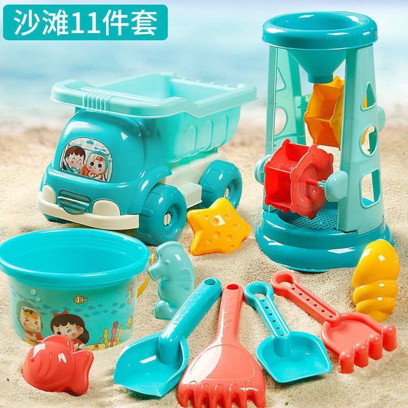 New Jianxiong Children's Beach Bucket Toy Car 23 Piece Set Baby Water Play Sand Shovel Hourglass Beach Tools