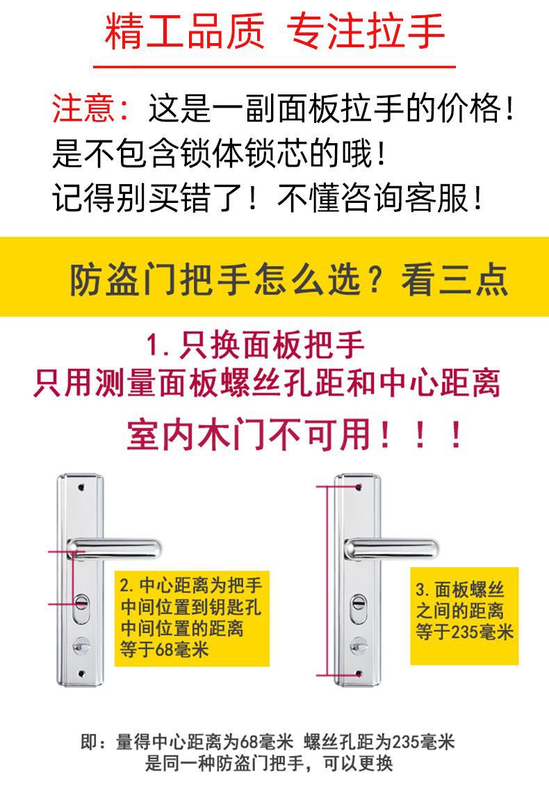 Anti-Theft Door Handle Hole Spacing 235mm Lock Handle Panel Handle Adjustable Left and Right Anti-Theft Accessories Simple Anti-Pry