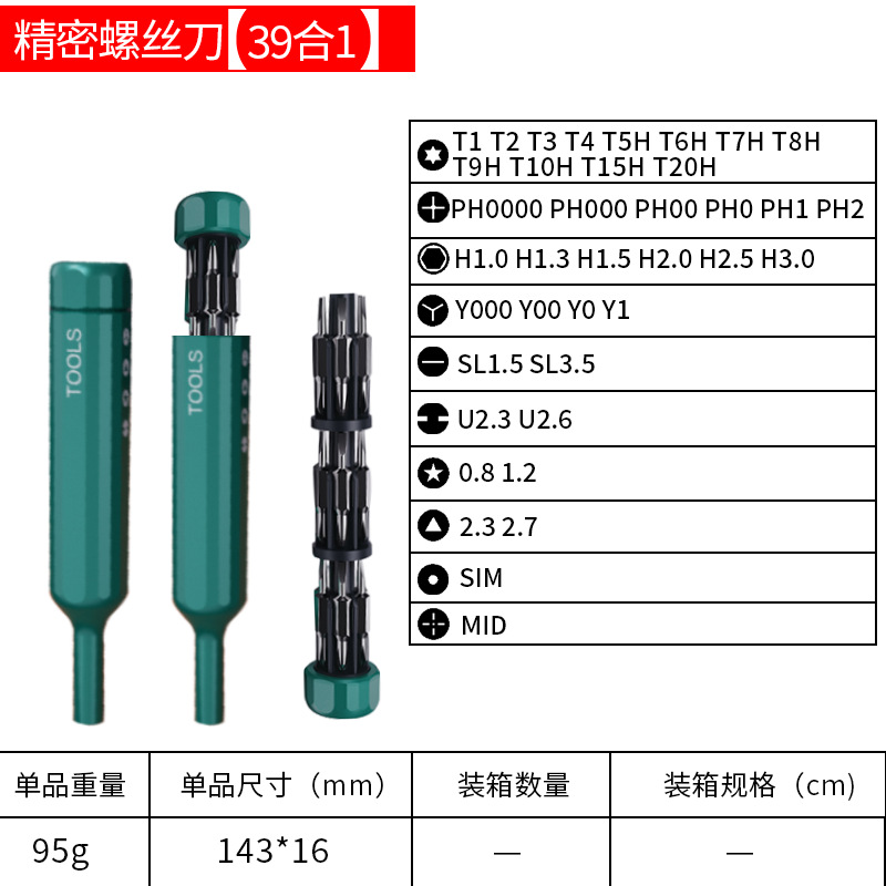 | 配件清单: | 螺丝刀手柄*1,批头*13 |