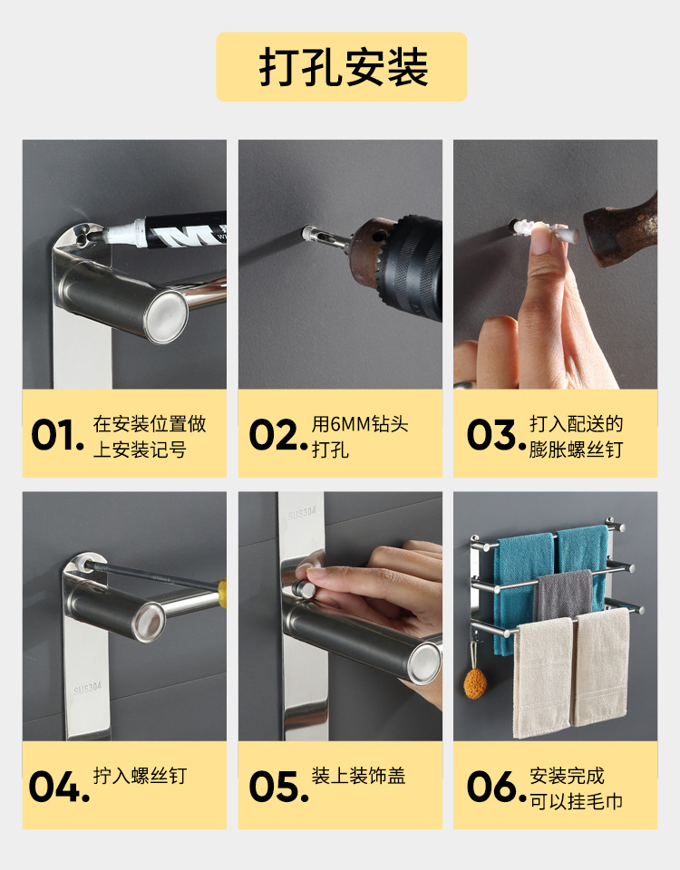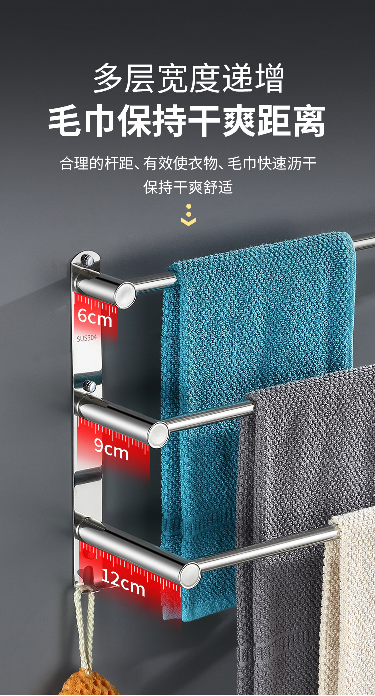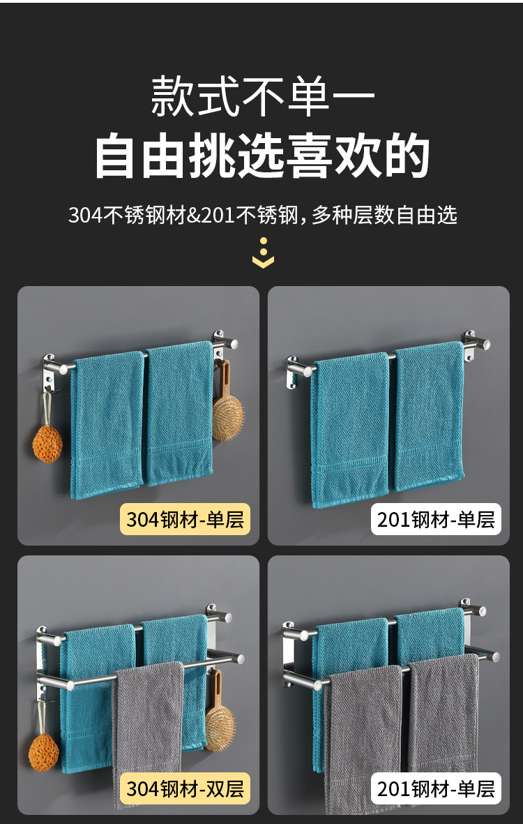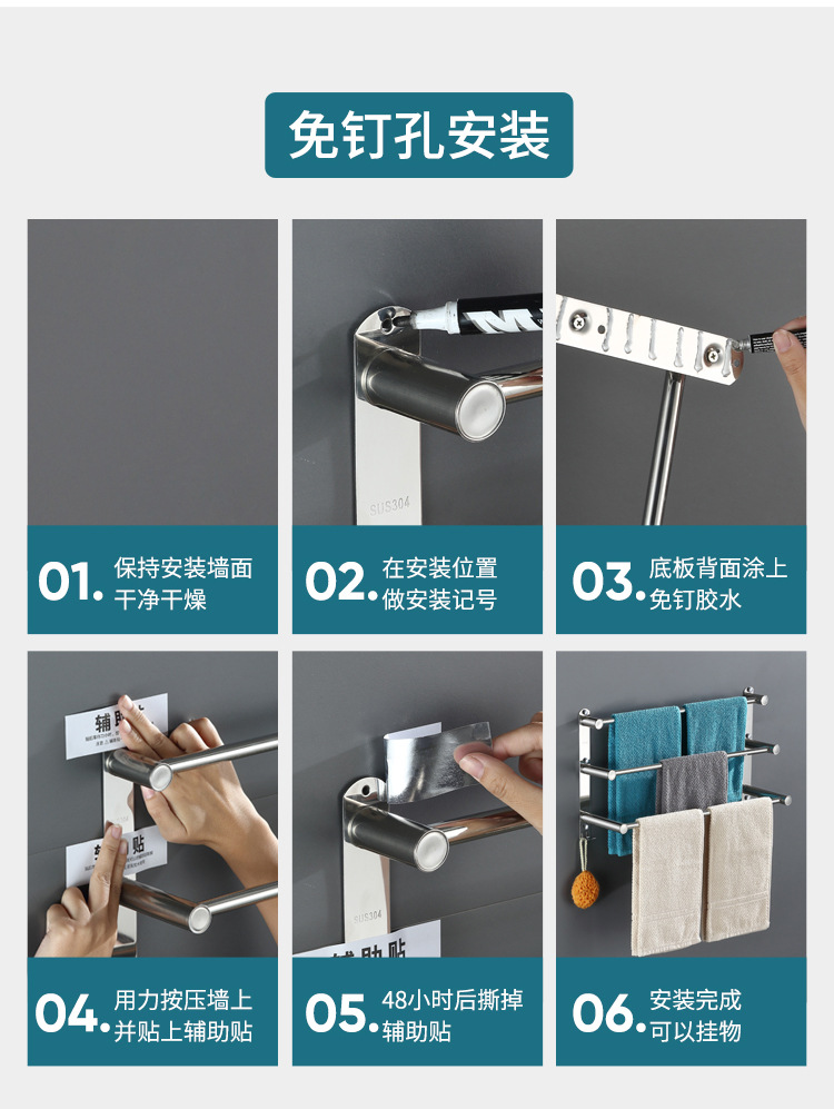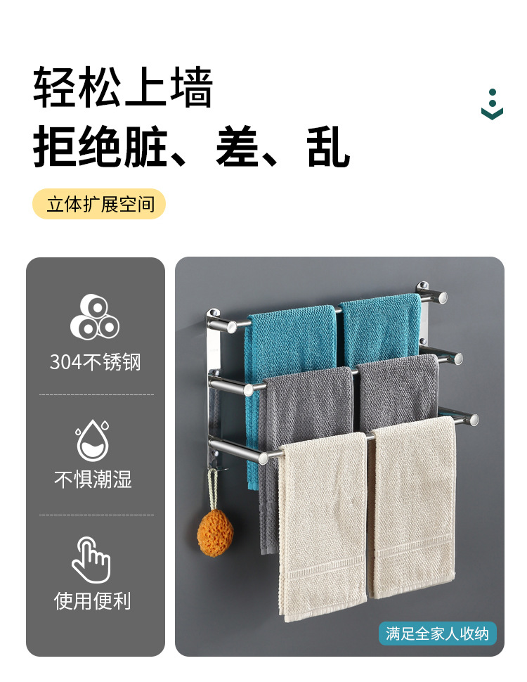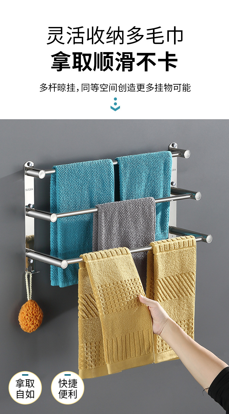 Towel rack punch-free toilet storage rack towel rack bathroom bathroom toilet stainless steel hanging towel bar single