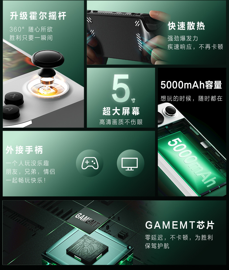 5寸全贴合屏幕分辨率854*480(霍尔摇杆)