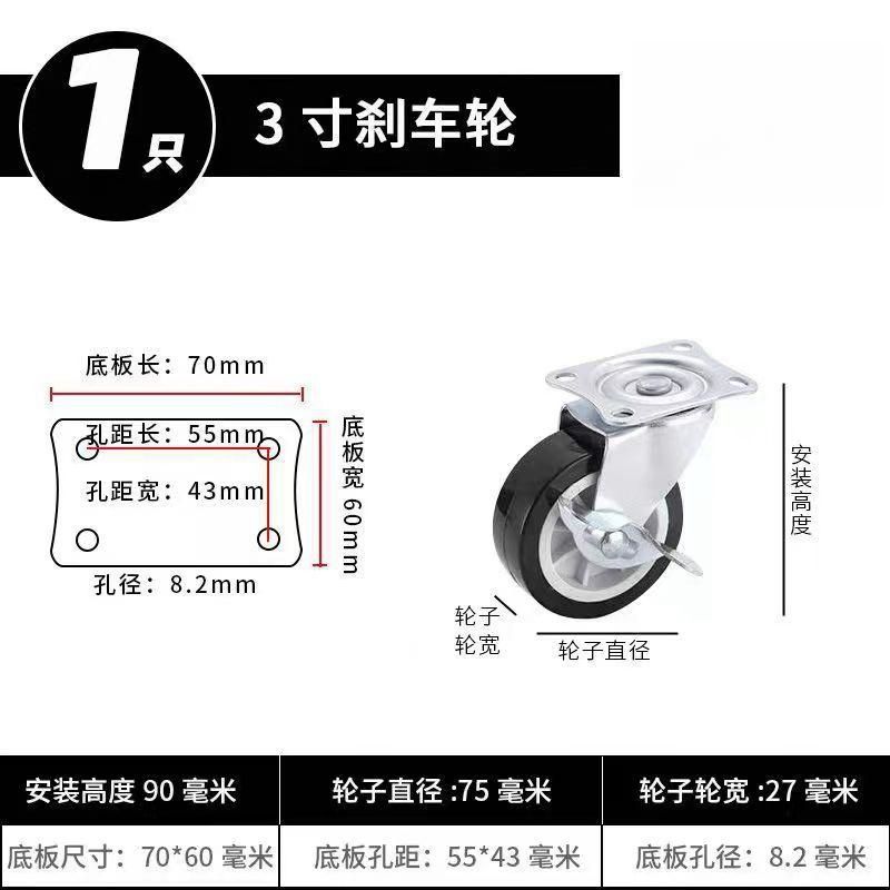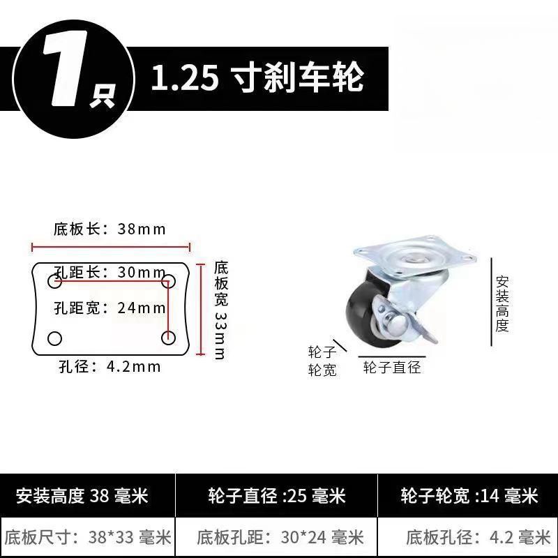 Roller light universal wheel caster 1 inch 1.5 inch 2 inch 3 inch pulley wheel with brake wear-resistant silent furniture wheel
