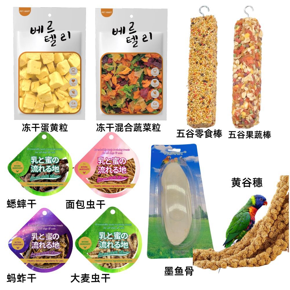 Dried mealworms - net weight 20g Bird food five-color millet 1200ml Deluxe parrot mix-800g Parrot milk powder-500g Full price parrot food - 2.5kg Special food for peony parrots-500g Dried krill - net weight 20g Dried crickets - net weight 20 grams Dried grasshoppers - net weight 20 grams Dried grain worms - net weight 30 grams Dried barley worms-net weight 20g Grain snack bar-1 stick/140g Grain and fruit bar-1 stick/140g Yellow valley spike-2 pack 01686 water wheel toy 02938 paper tube bird toy 00135 hanging sepak takraw bird toy SA00449-hanging corn cob toy 03382 Bird Swing SA00183-small yellow cane ball toy 03377-65cm cotton rope stand bar 03896-hanging wood chip bird toy 00133 loofah straw toy 03436 shell bird swing toy 00531-Wooden Rope Bird Toy 00717-Bird Fiber Rope Sa06350-bird cotton nest Star fruit - 1 piece 01039-alphabet wooden block toy 01722-sand stick standing bar 03477-wooden standing bar bird toy 02911-bird standing bar Sa00860-branch 03047-thick branches 03045-sepak takraw 04063-mirror 04668-branch Sa00041-luffa 10967-branch 04002-hanging purple grape toy Sa06306-water drop bird's nest Sa00073-pineapple loofah 00839-funghi stick toy 00798 SA00672 Sa00375-luffa toy nest 02845-kapok shell Freeze-dried egg yolk granules-net weight 30g Freeze-dried mixed vegetables-net weight 100g