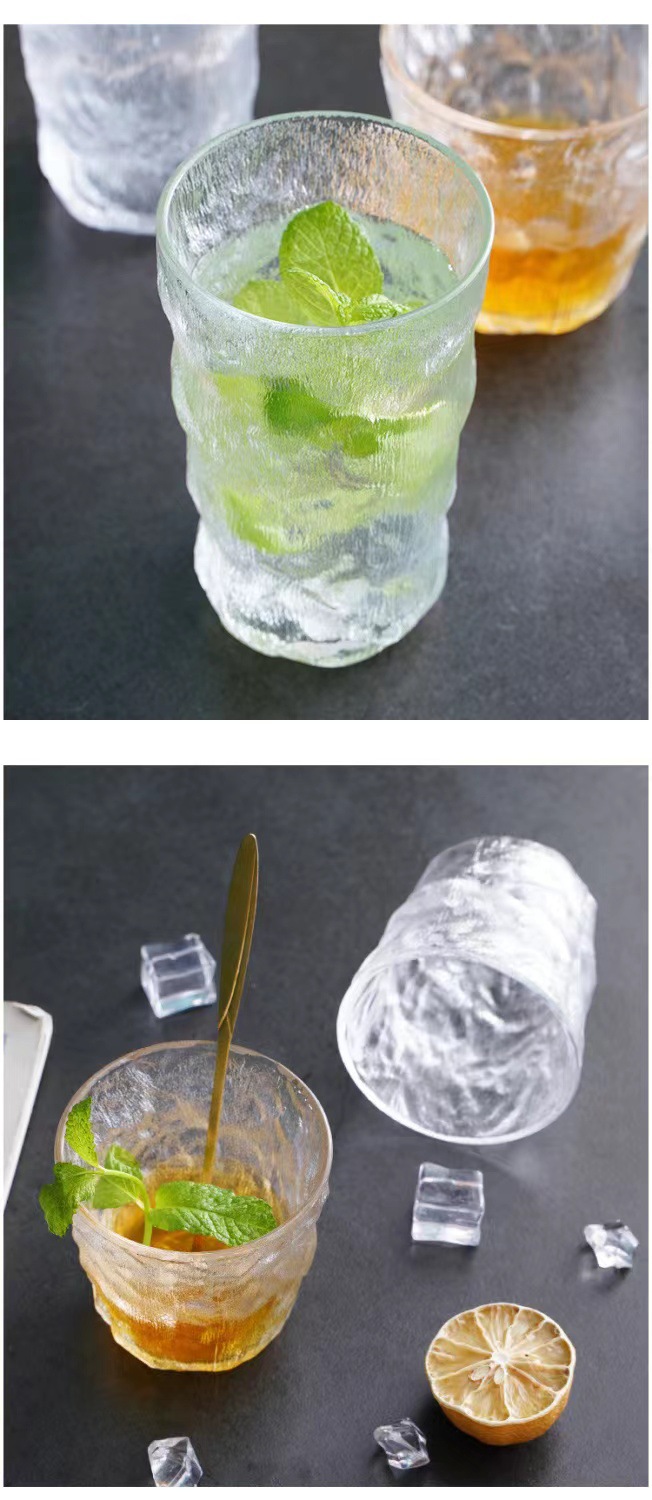 Japanese Glacier Tree Pattern Glass Cup Household High-Value Water Cup Female Juice Drink Cup Ins Style Tea Cup Wine Cup