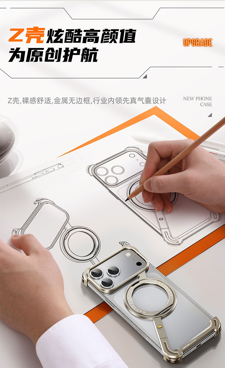 Paifan Z-Shell Metal Frame Mobile Phone Case with Magnetic Stand Suitable for Apple Iphone17Promax Wholesale