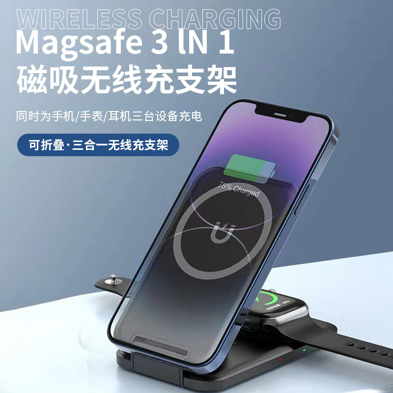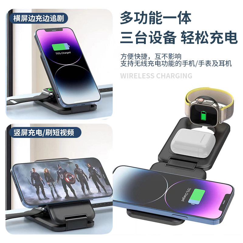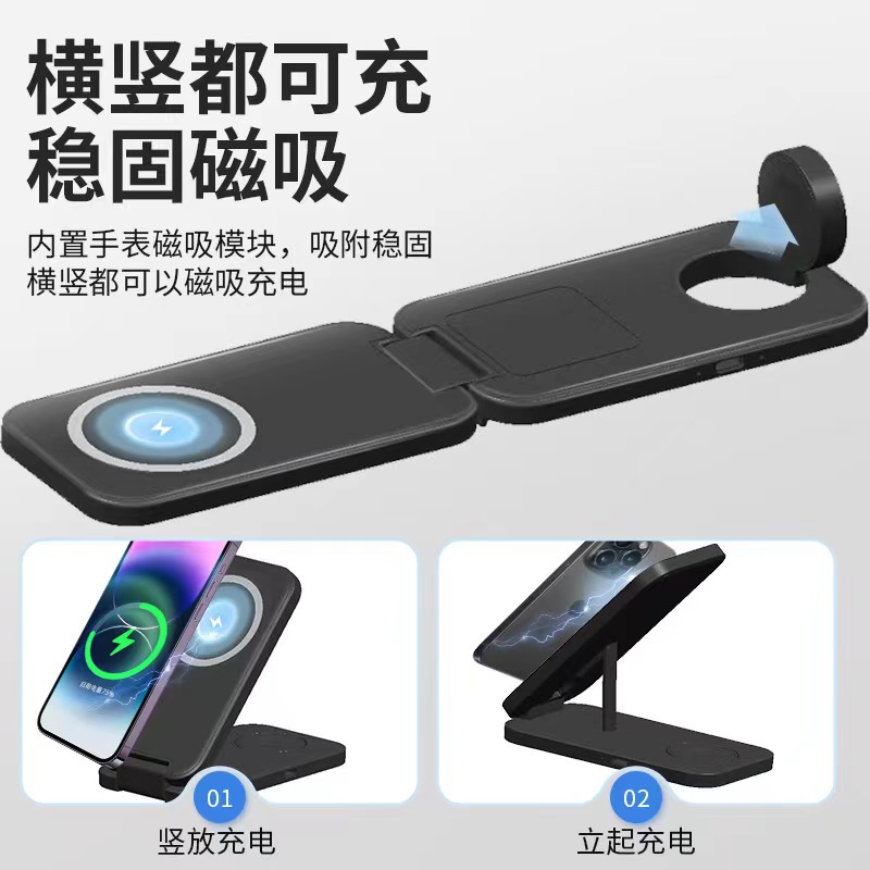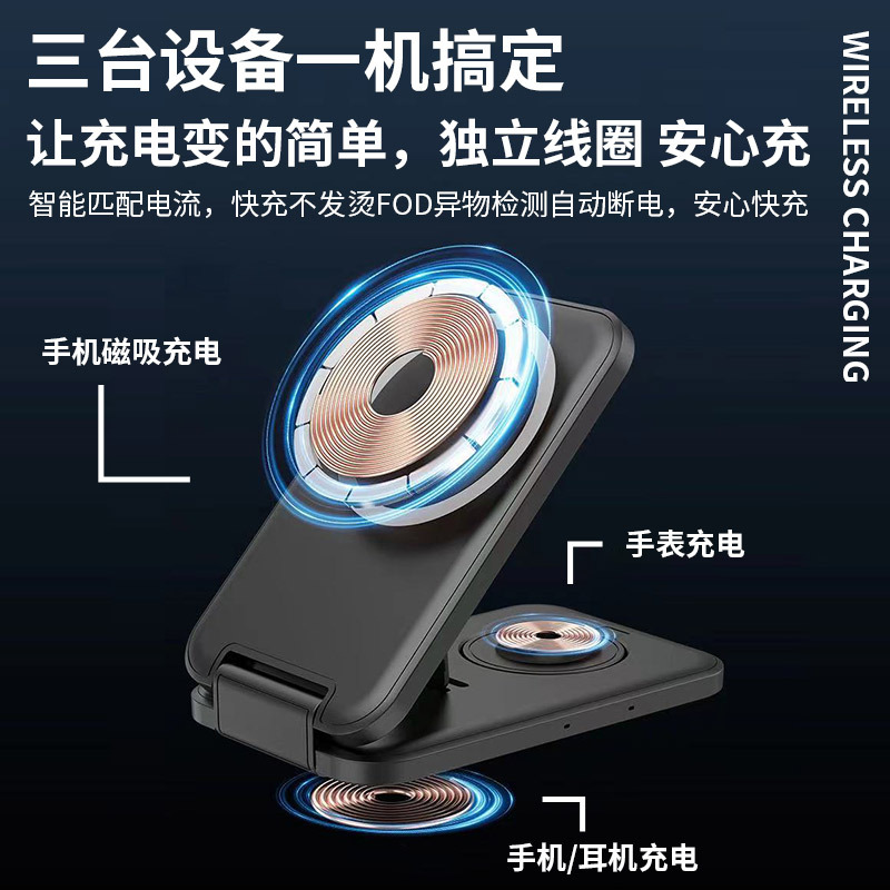 Folding Magnetic Wireless Charger Multifunctional Three-in-One Wireless Charger Independent Coil Multi-Device Same Charge