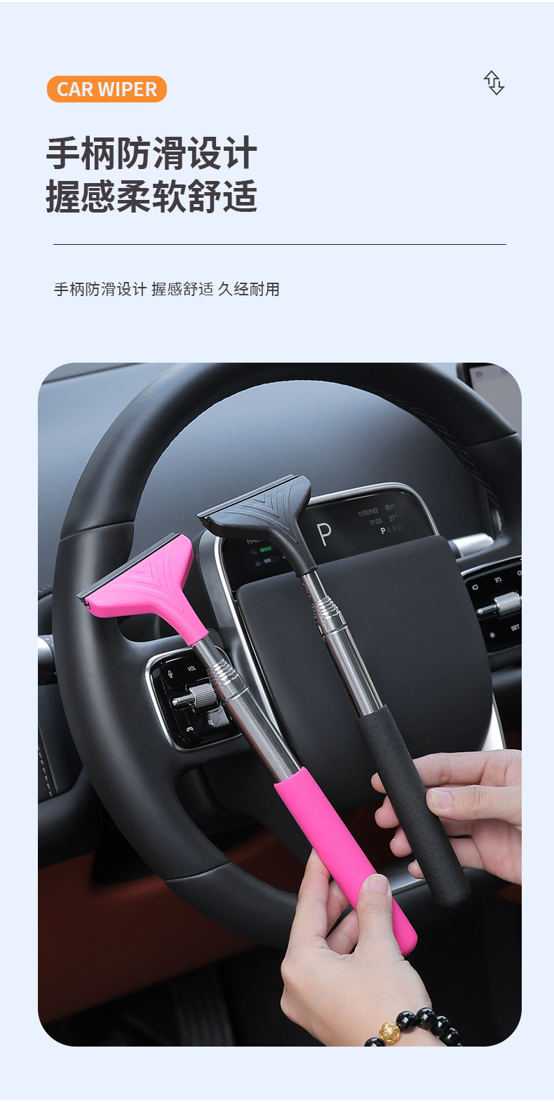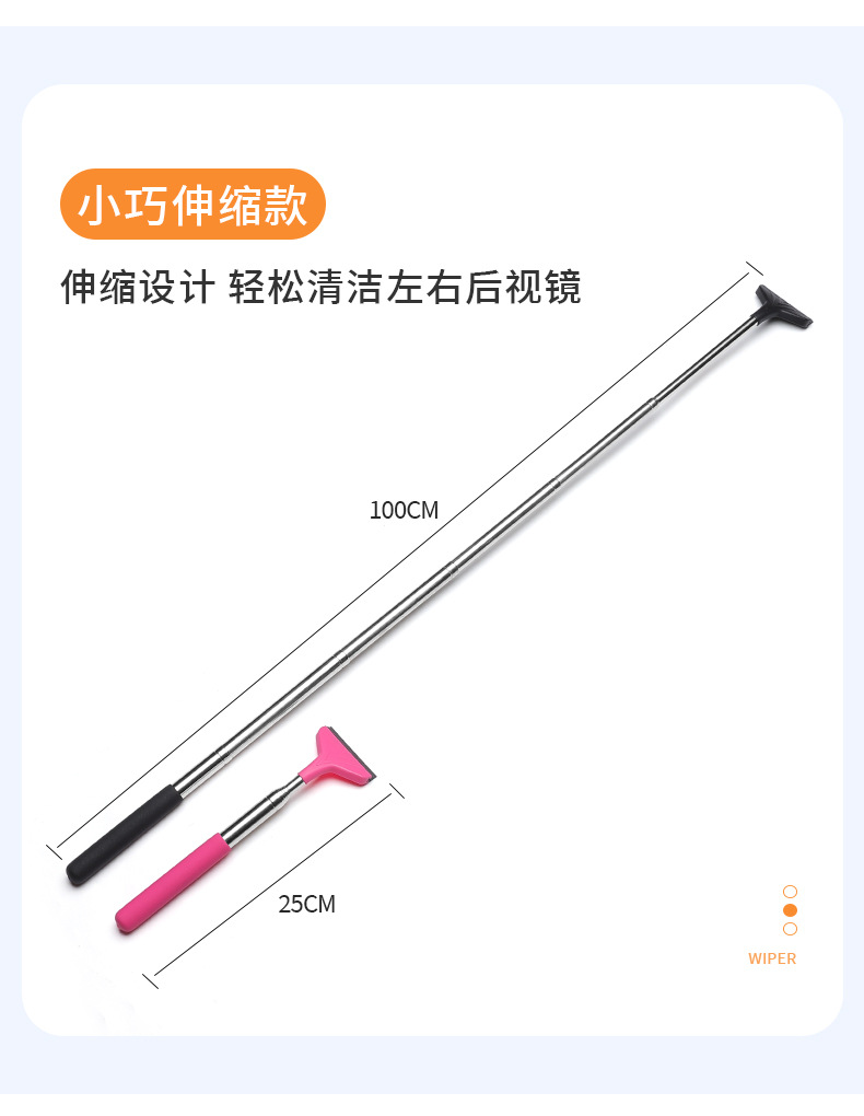 Car rearview mirror wiper stainless steel telescopic wiper strip window glass defogging wiper cleaning car wiper