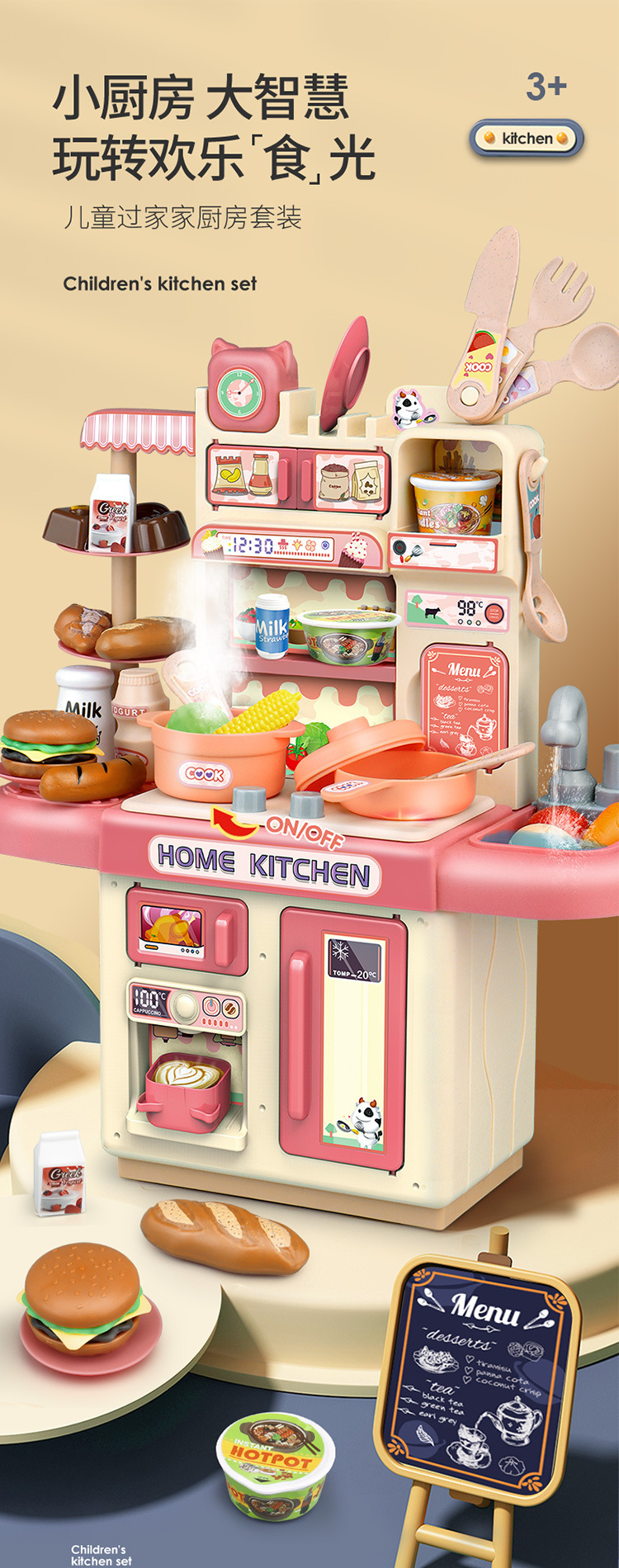 Baby Kitchen Toy Kitchenware Simulation Cooking Table Spray Vegetables Can Produce Water 2-Year-Old Kidsren's Set Play House