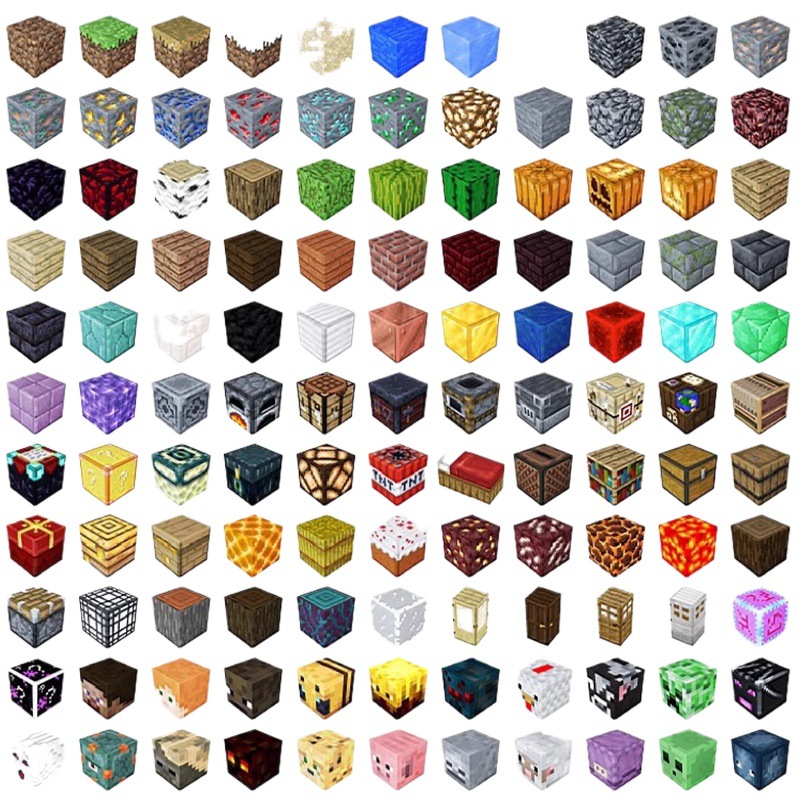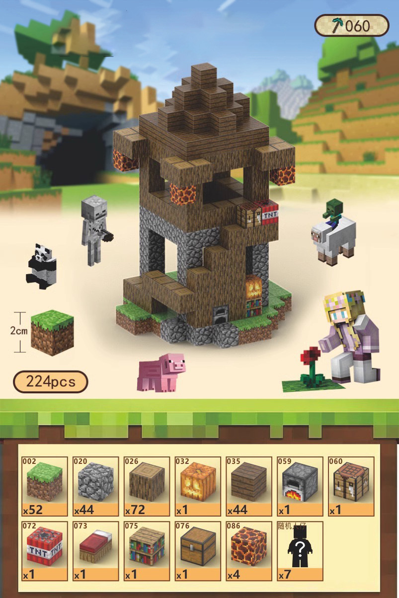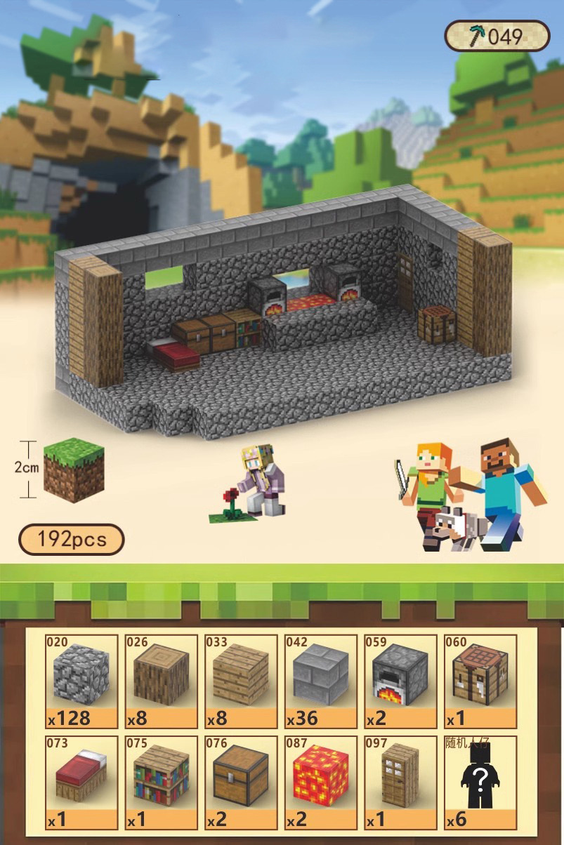 001 mud 007 ice 008 snow 009 base rock 010 coal ore 011 iron ore 012 copper ore 013 gold ore 014 lapis lazuli 015 red ore 016 ore diamond 017 emerald ore 019 stone 020 pebbles 021 moss pebbles 023 obsidian 026 oak 027 like leaves 028 watermelon 039 bricks 042 stone brick 043 moss stone brick 049 iron block 051 gold block 052 lapis lazuli 053 ruby block 054 diamond block 057 amethyst block 059 furnace 062 smoking table 063 high stove 064 archery table 065 chart making table 067 with magic table 068 lucky 069 end shadow stone 072 exploded medicine 073-1 single bed [073 the complete set requires 073-1 and 073-2] 075 bookshelf 076 wooden box 077 wooden bucket 079 honeycomb 082 dried grass stack 083 cake 086 rock slurry block 087 rock slurry 089 piston 090 brush monster cage 100 unknown elements 104 bee 107 chickens 108 cow 109 bitter people 110 late shadow dragon 116 pigs 117 skeleton 118 sheep 120 slime 125 villagers 126 guard 129 zombies 134 the last shadow man 151 floor-covered moss 152 light blue glass 161 blue sea