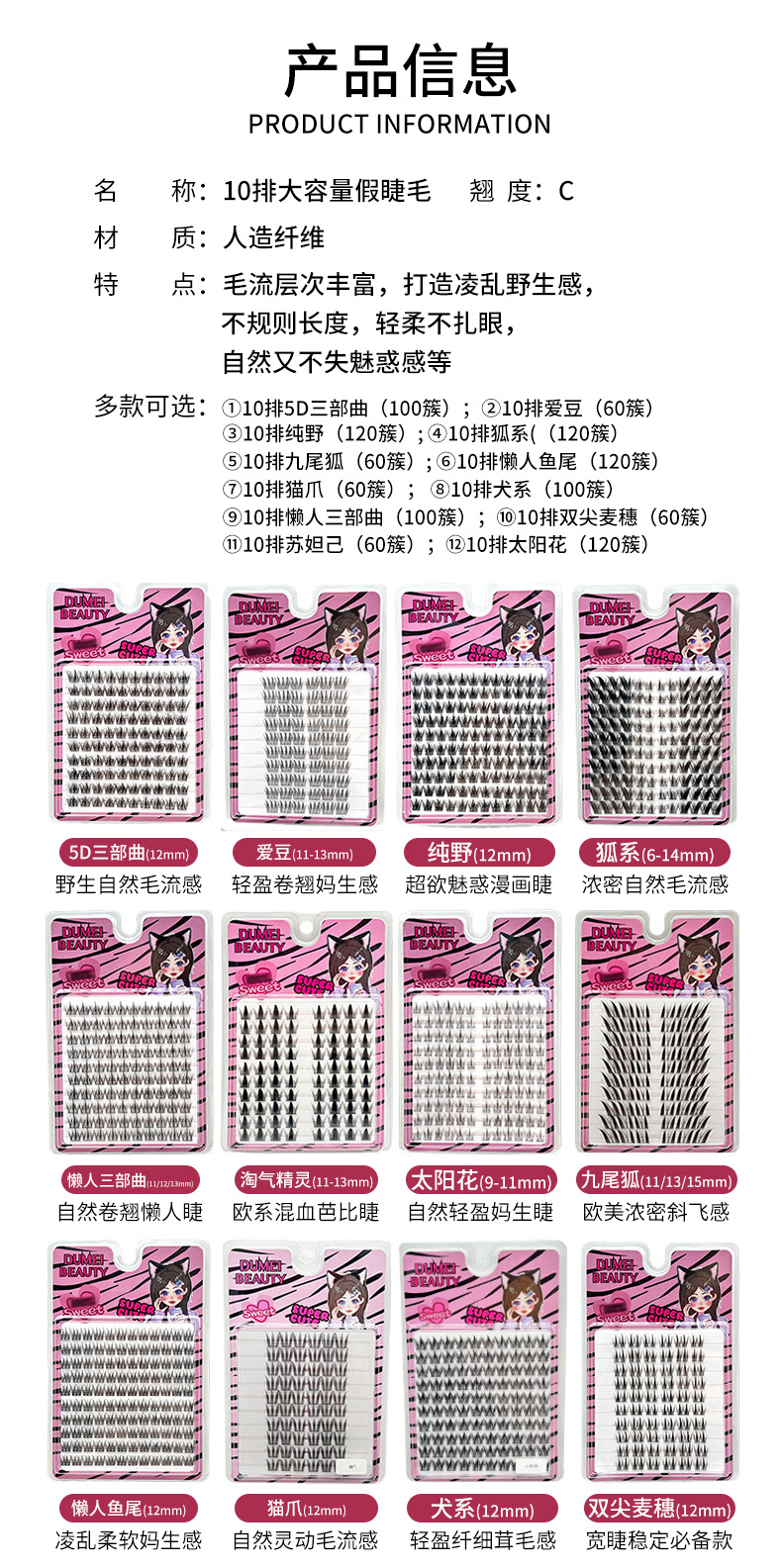 Wholesale False Eyelashes Family Pack Glue Type Large Capacity Sunflower Pure Desire Cat Paw Fox Style Female Natural Eyelashes