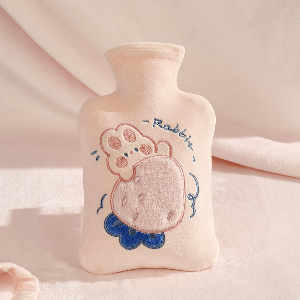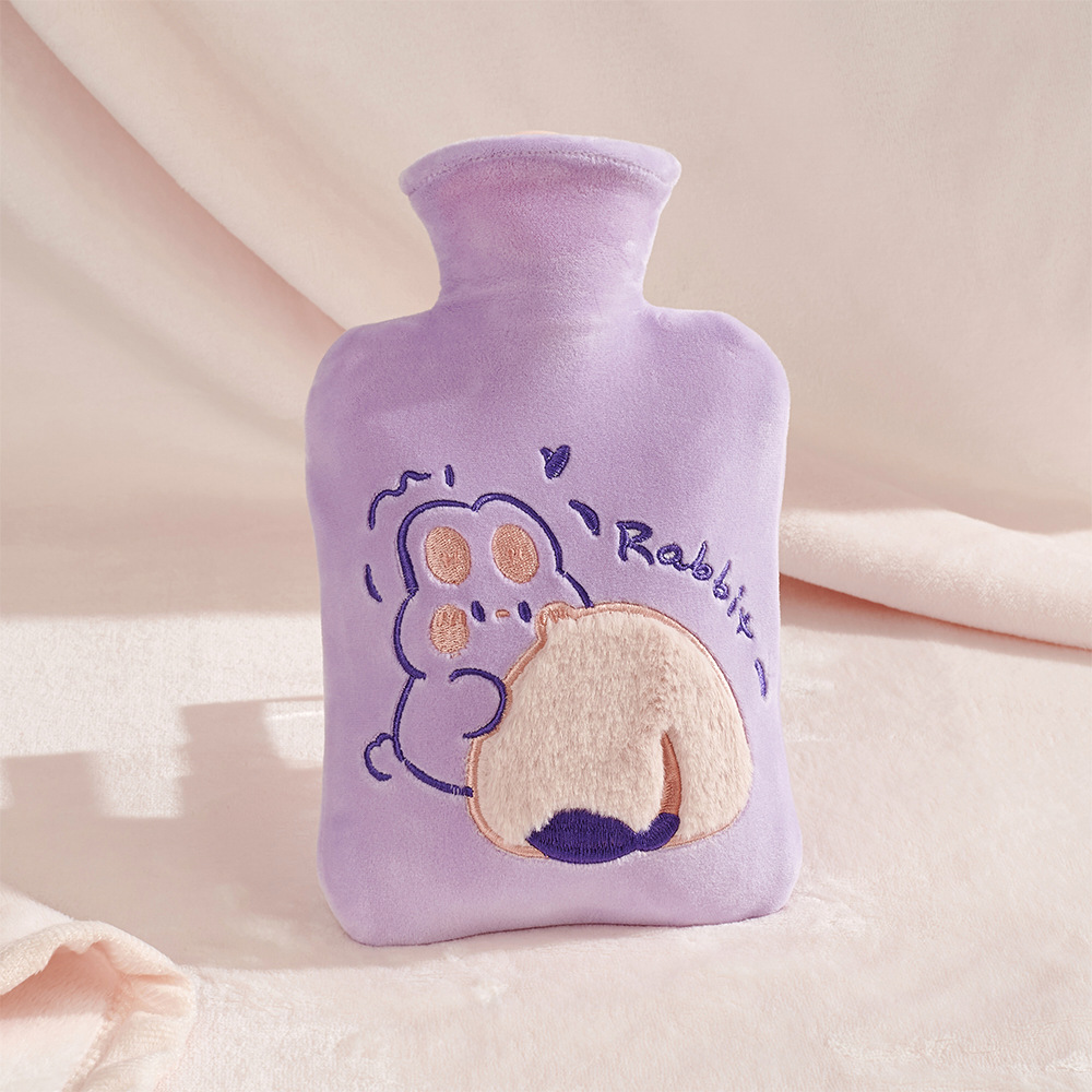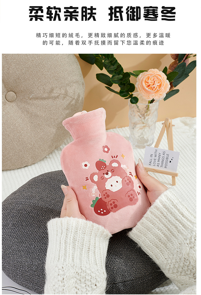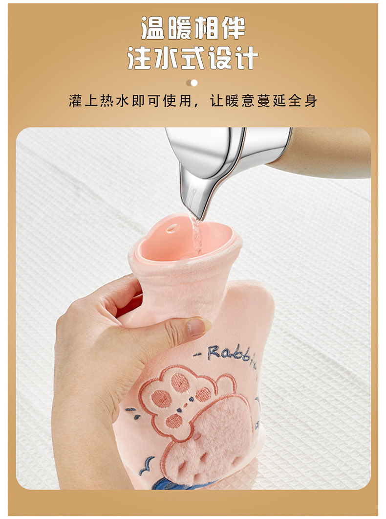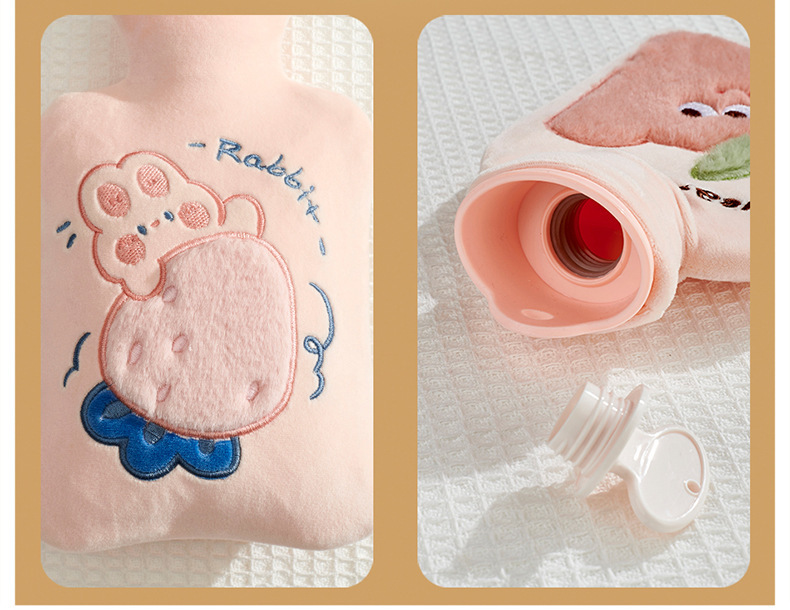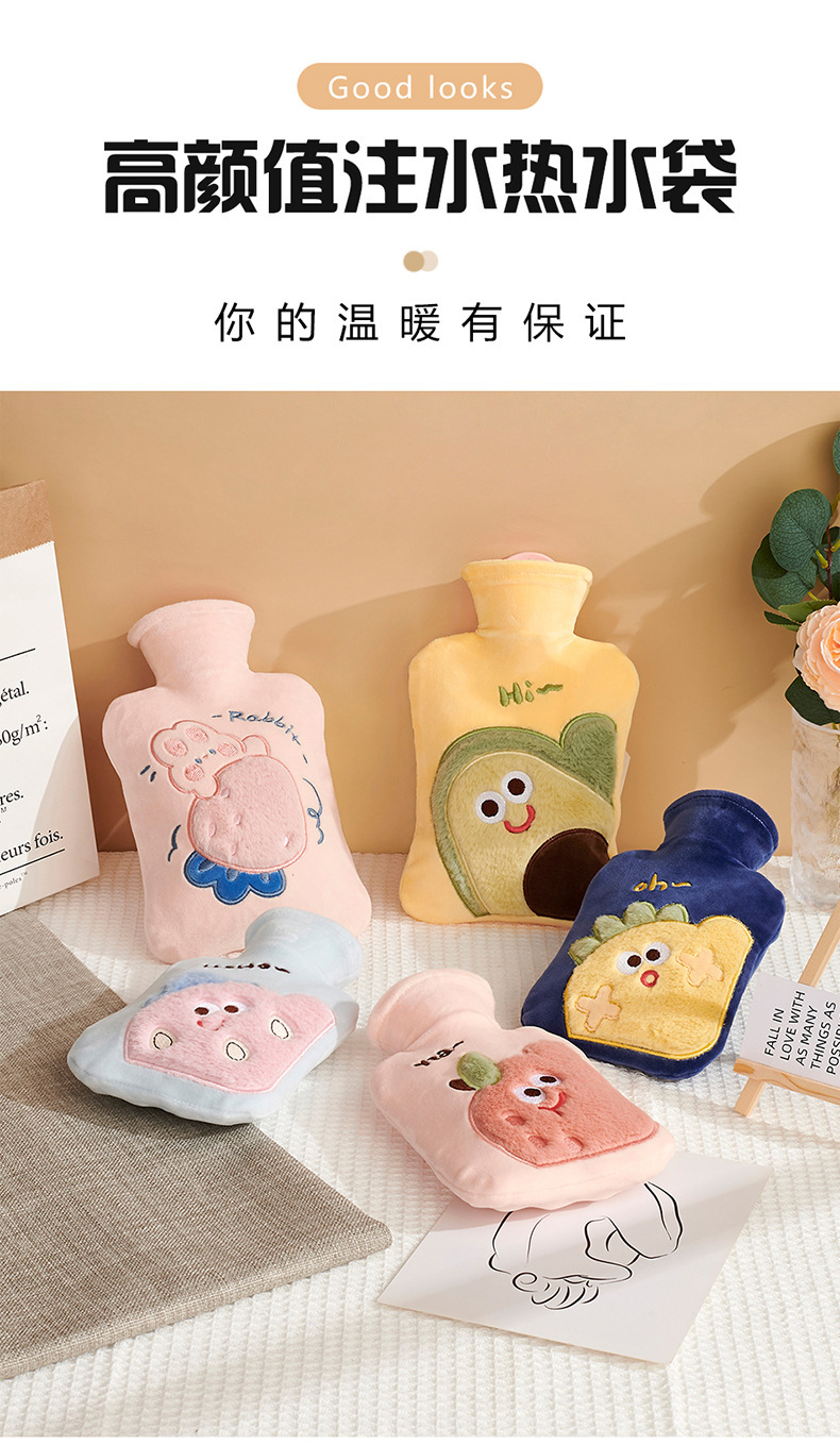 Plush Cloth Set Embroidered Warm Water Bag PVC Water Injection Explosion-proof Hot Water Bag Removable and Washable Warm Belly Warm Handbag Winter Warming