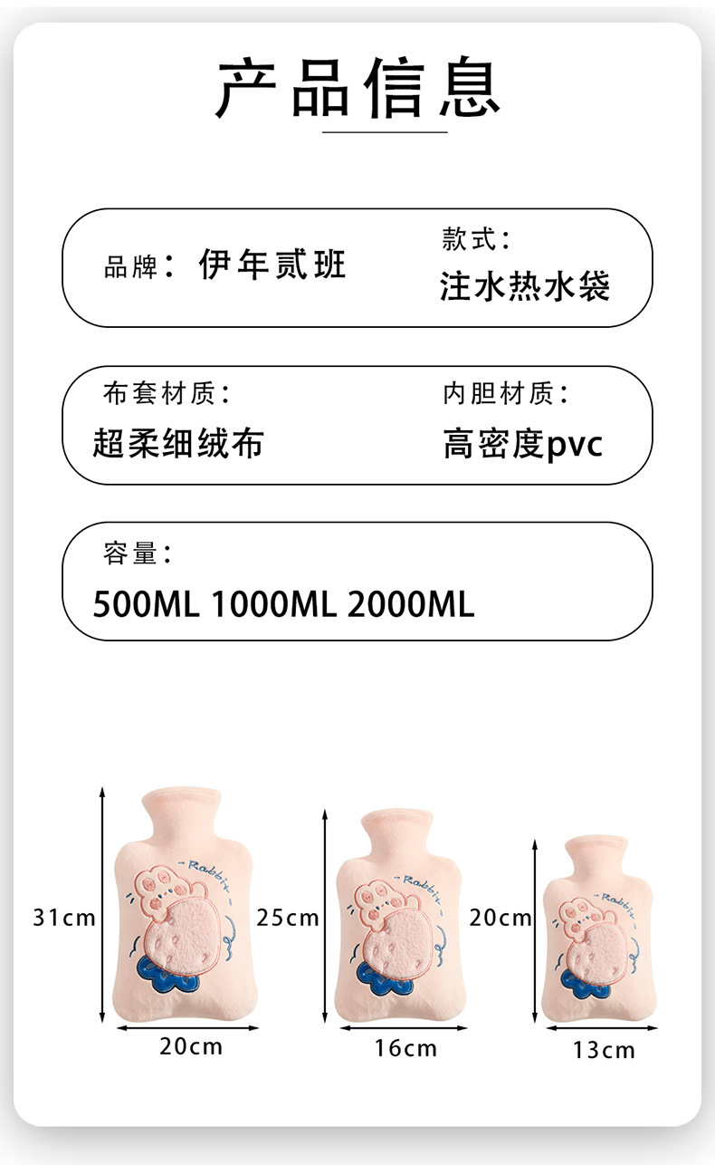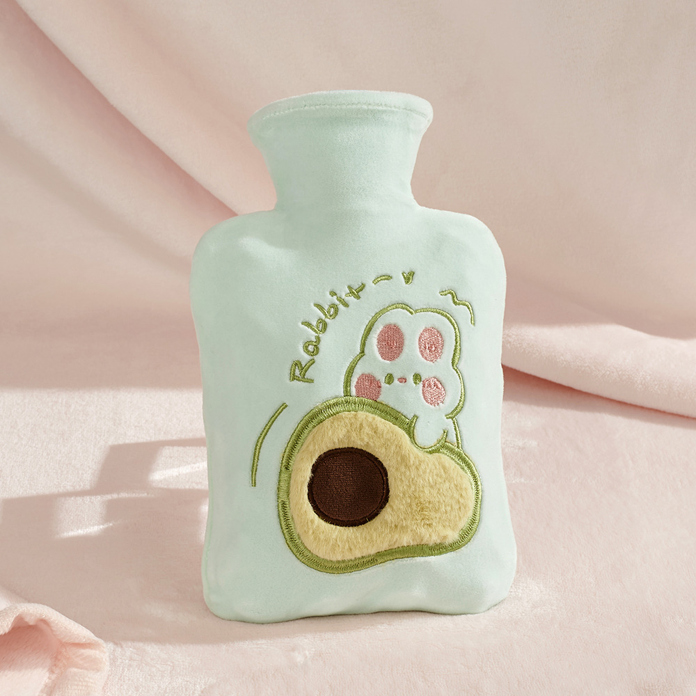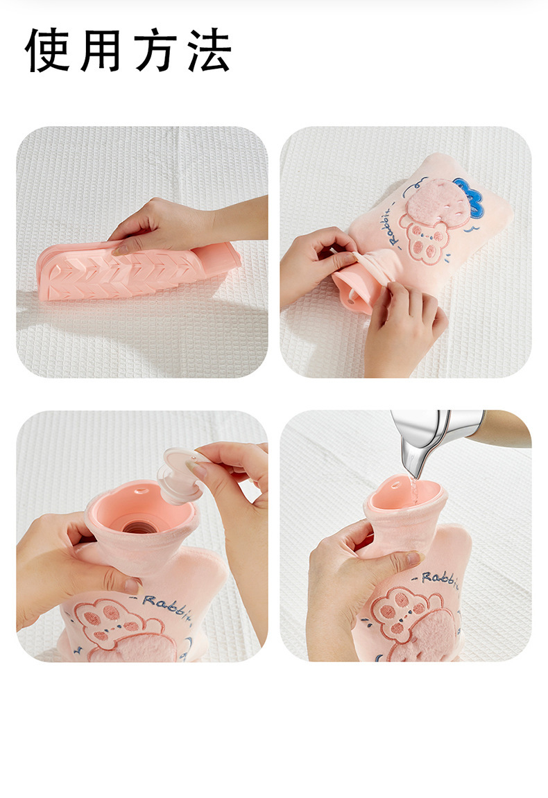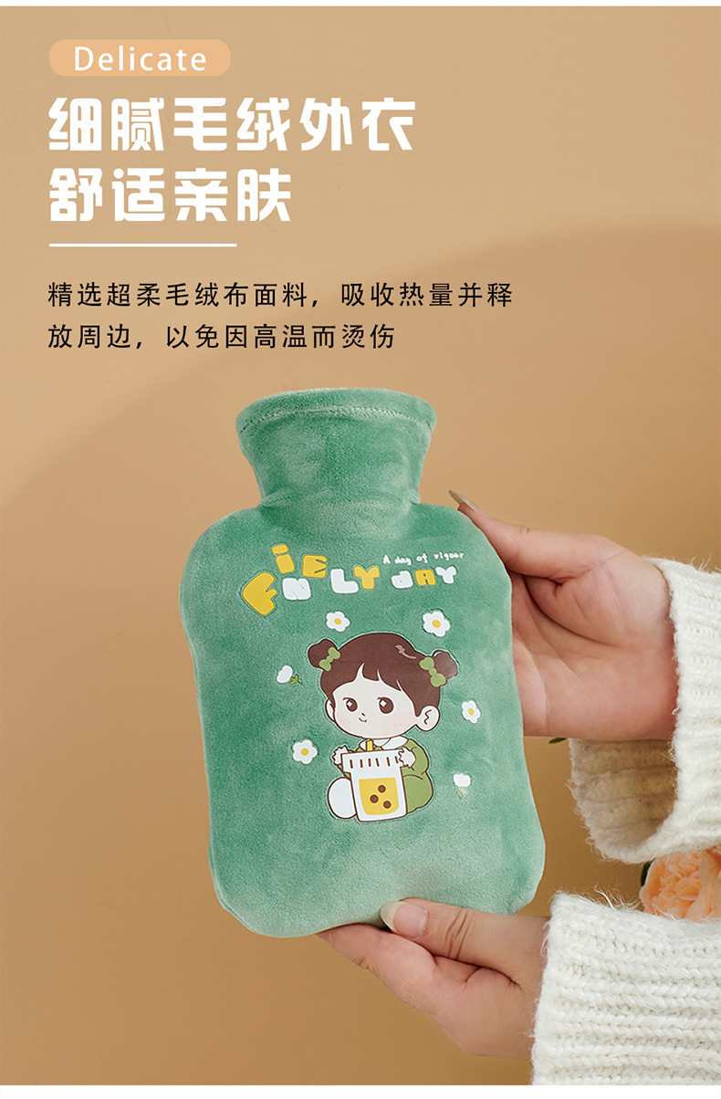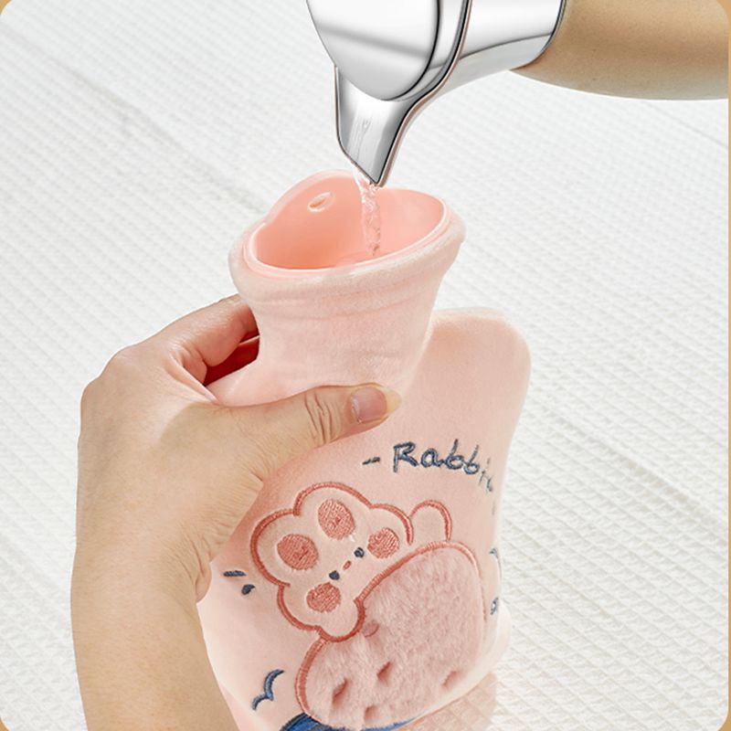 Plush Cloth Set Embroidered Warm Water Bag PVC Water Injection Explosion-proof Hot Water Bag Removable and Washable Warm Belly Warm Handbag Winter Warming