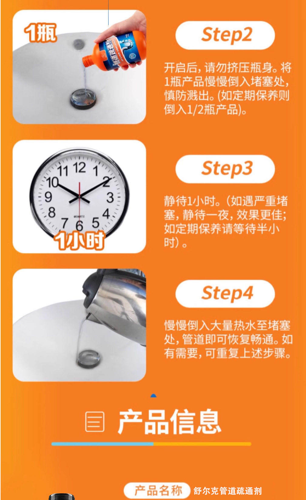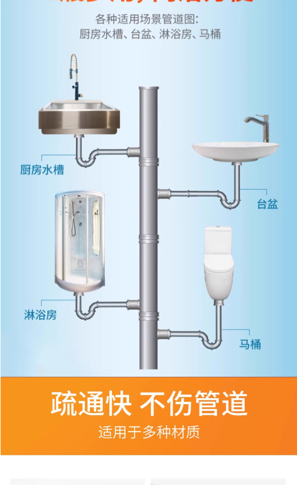 颗粒型管道疏通剂活氧强力溶解,使用过程中产生大量热量,请严格按照说明操作使用。注意安全!