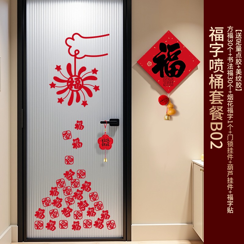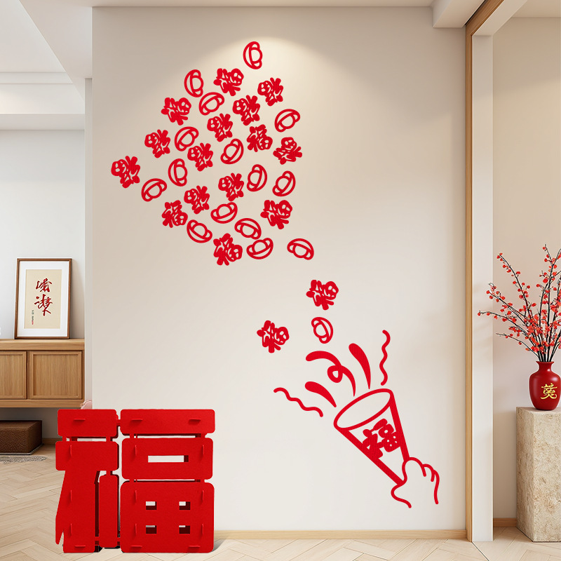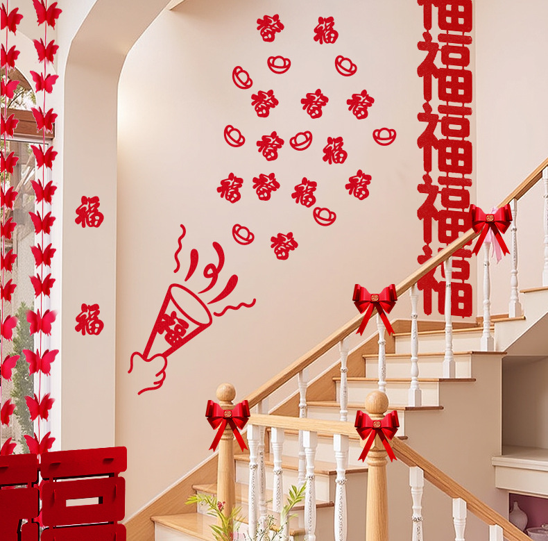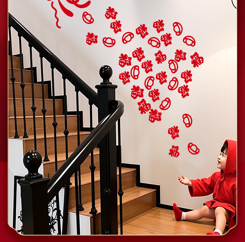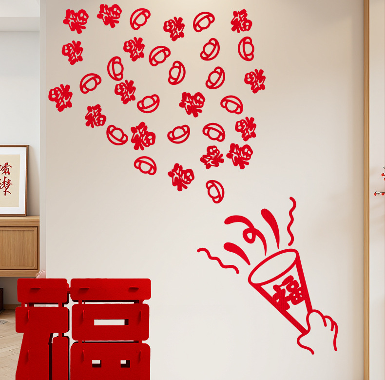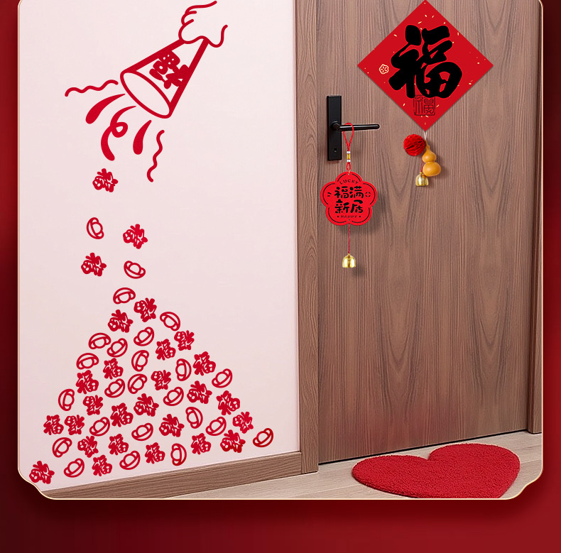 2026 New Year Decoration Fortune Character Stickers Spring Festival New Year Celebration Year of the Horse Background Wall Window Scene Atmosphere Arrangement