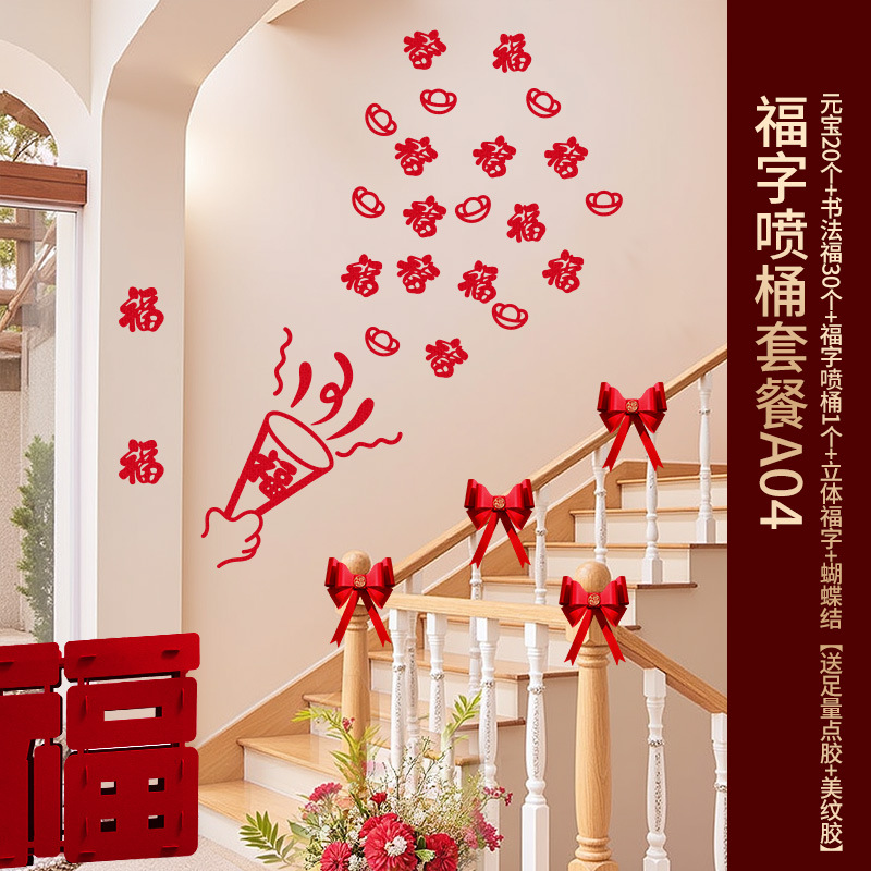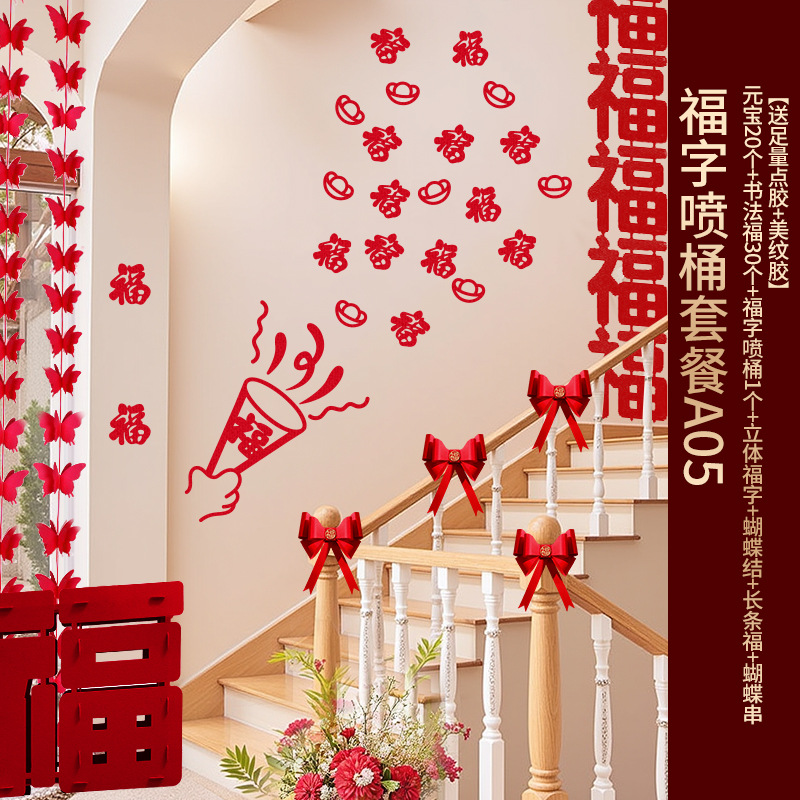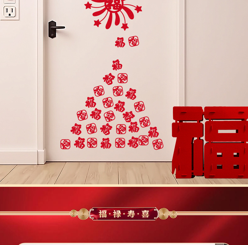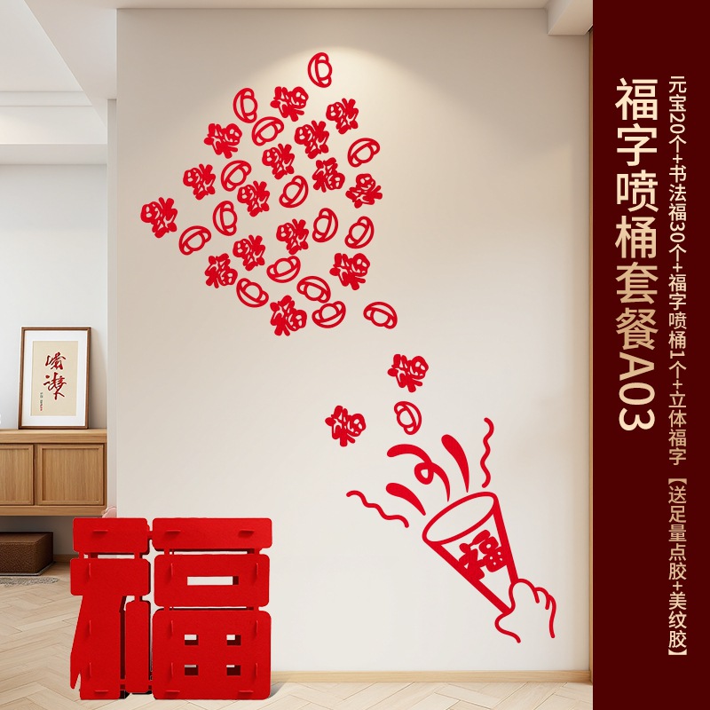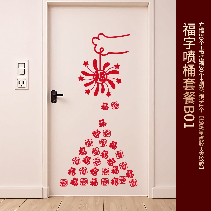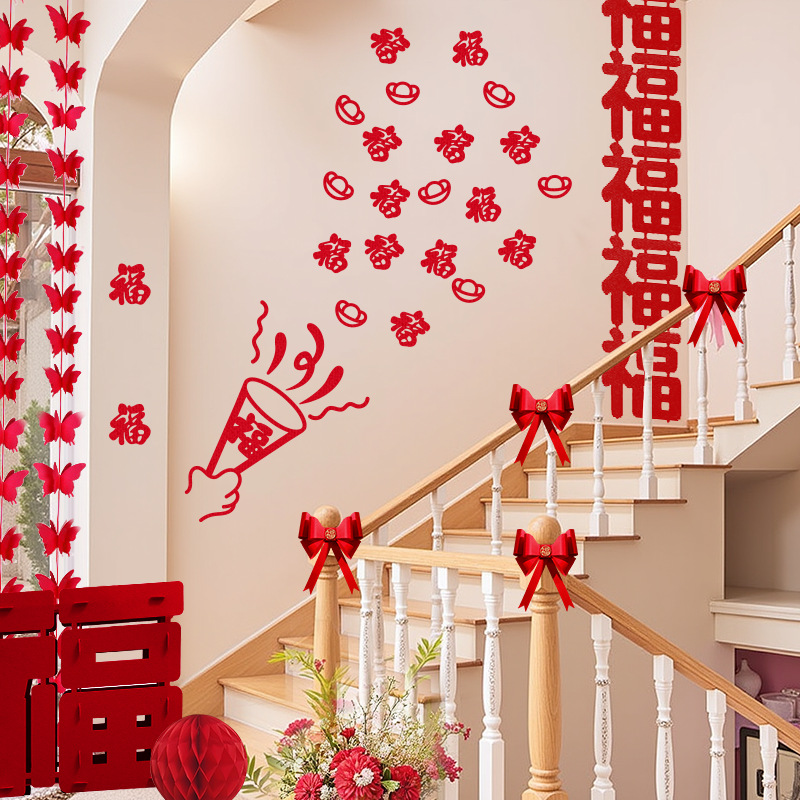 2026 New Year Decoration Fortune Character Stickers Spring Festival New Year Celebration Year of the Horse Background Wall Window Scene Atmosphere Arrangement