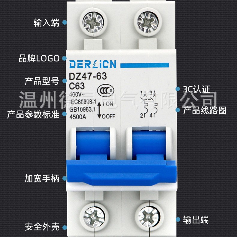 Dz47 Small Circuit Breaker 63A Micro 125A Air Switch Household 1P2P3P4P Overload Short Circuit Protection