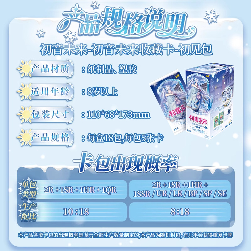 Hatsune miku charm pack 1 [30 packs in 1 box] sold for 2 yuan/pack Hatsune miku charm pack 2 bullets [1 box of 30 packs] sold for 2 yuan/pack Hatsune miku first look pack 1 [1 box of 18 packs] sold for 10 yuan/pack Hatsune miku first look pack 2 bullets [1 box of 18 packs] sold for 10 yuan/pack Hatsune miku first sight package 3 bombs [1 box of 18 packs] sold for 10 yuan/pack Hatsune miku first look pack 4 bullets [1 box of 18 packs] sold for 10 yuan/pack