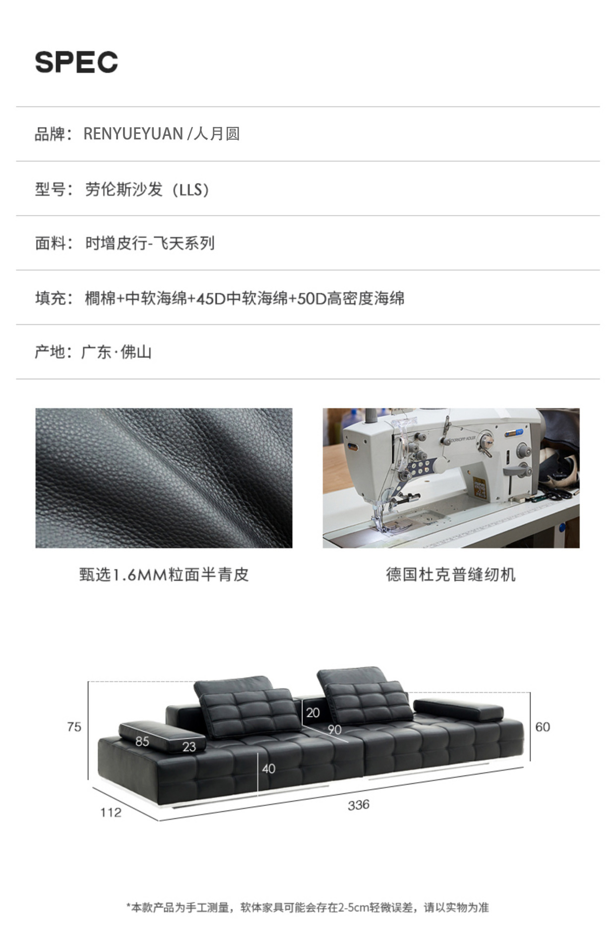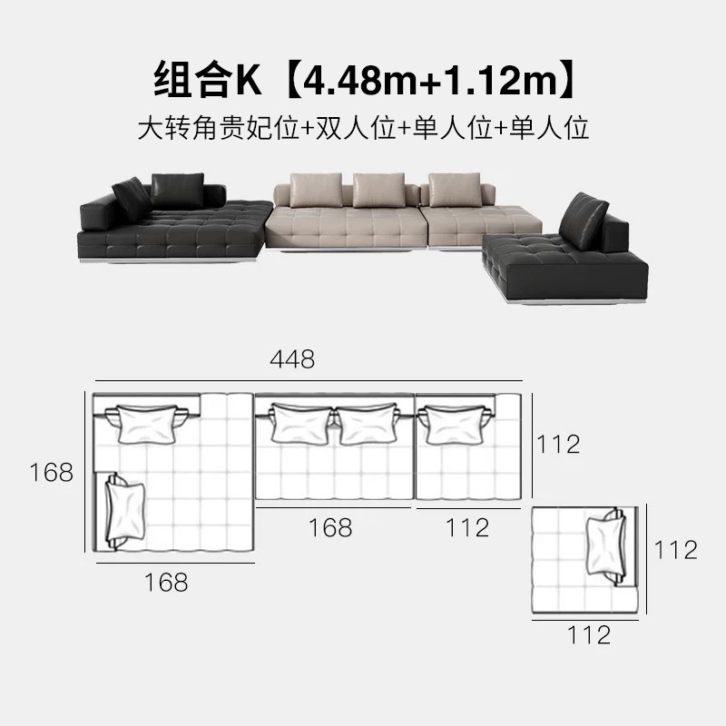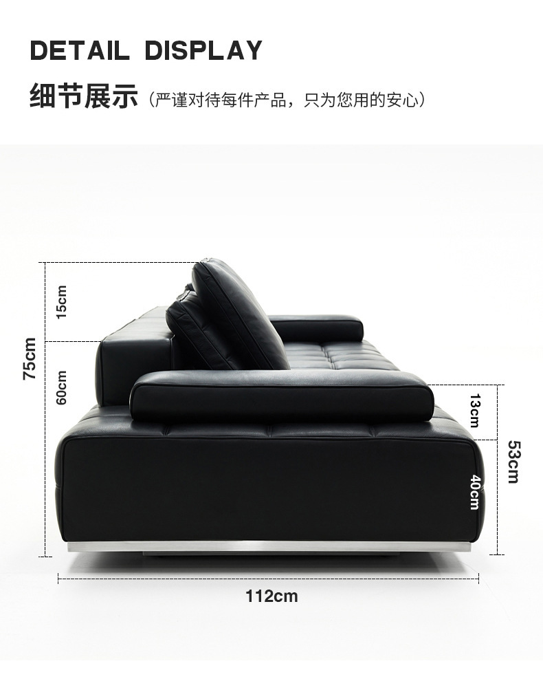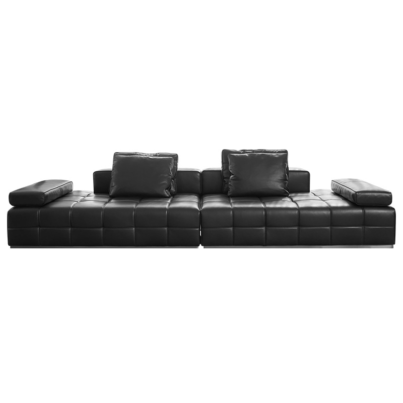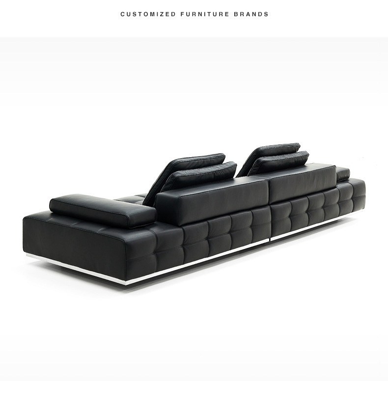 Foshan Wow Furniture High-grade Lawrence All-green Leather Straight Row Black Sofa Increases Feitian Galaxy Longjiang Factory
