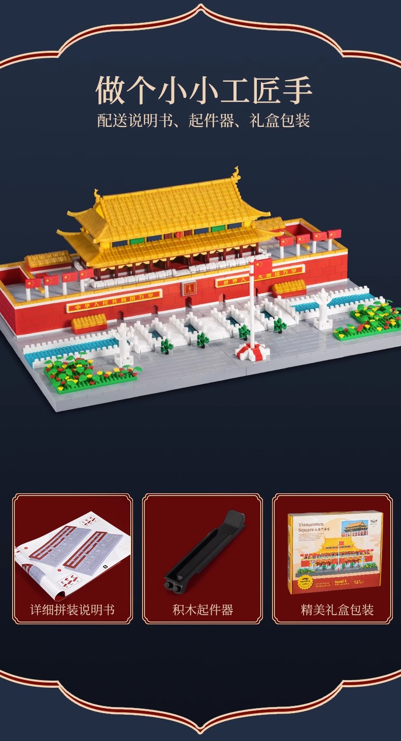 Tiananmen Square Yellow Crane Tower Micro Building Blocks Assembled Children's Toys Stereo 8-12 Years Old Educational Boys and Girls Birthday Gift