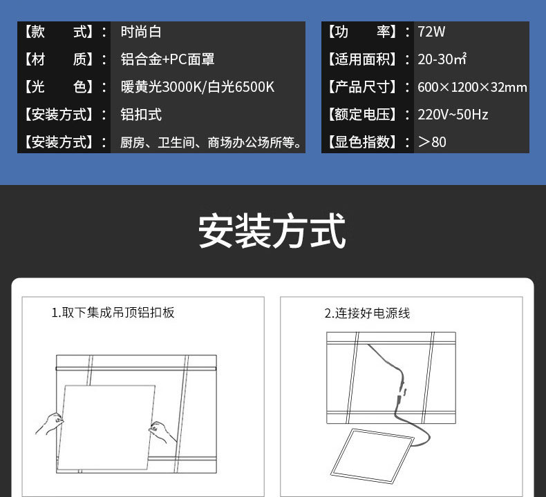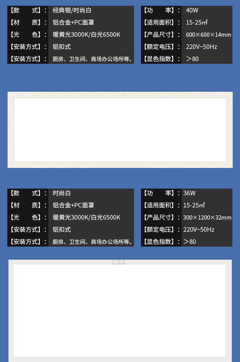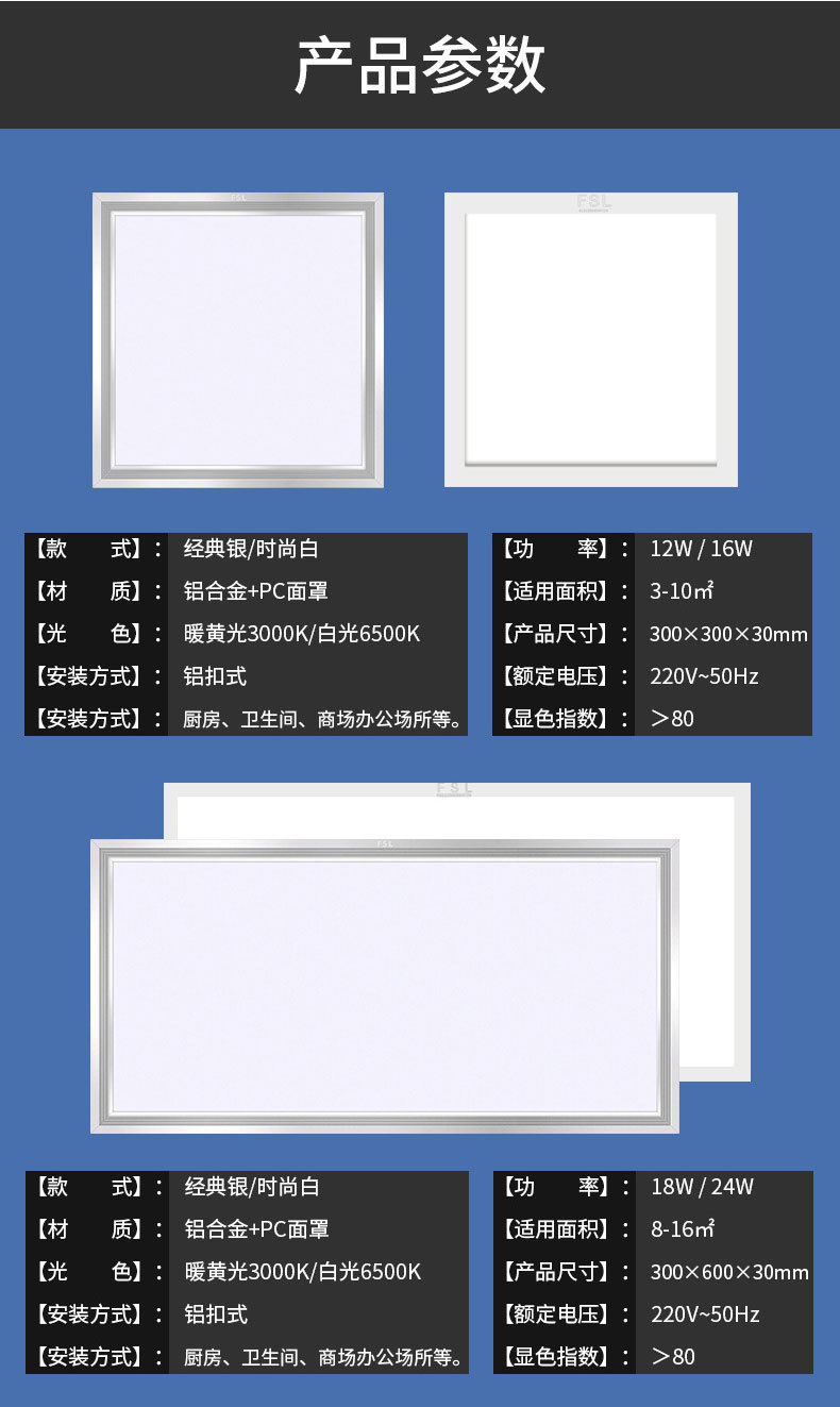 FSL Foshan Lighting integrated ceiling light led panel light kitchen bathroom aluminum buckle ceiling embedded panel light