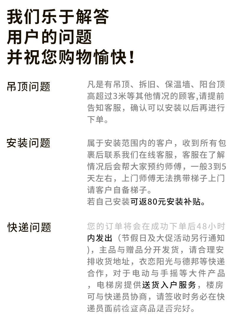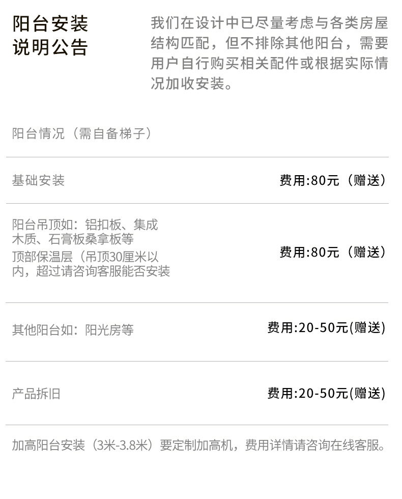 注意:产品适用于房高3米以内的房顶,超高咨询客服定制