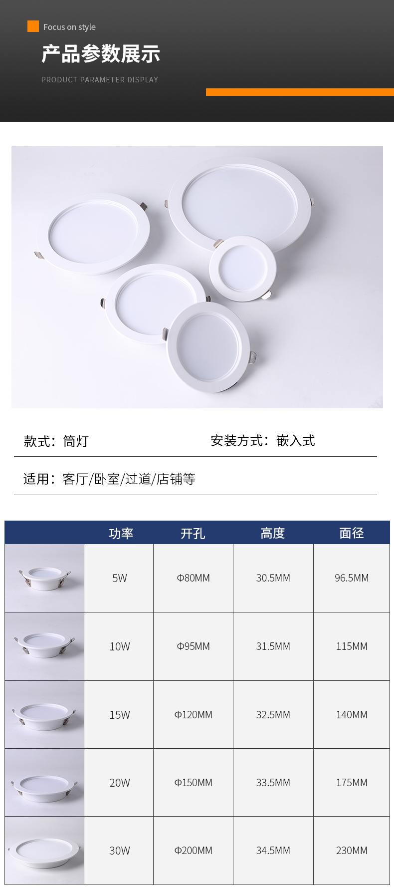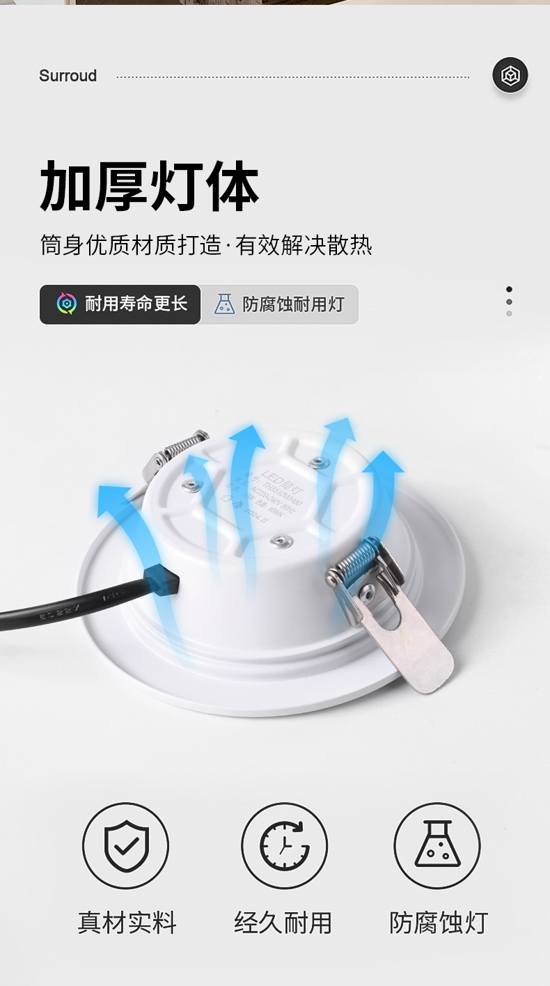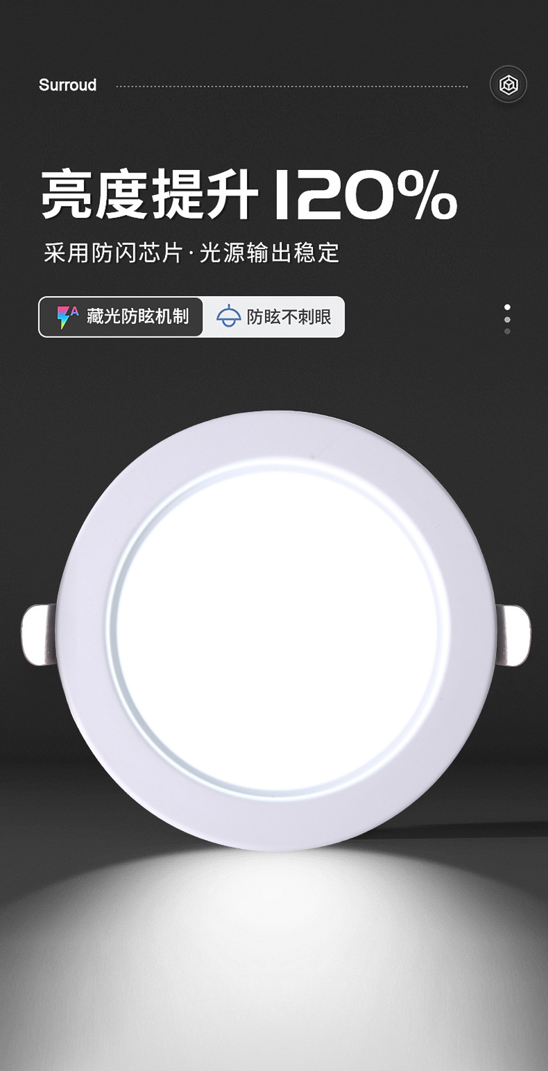 Led Downlight Embedded Round High-Brightness Lighting Household Commercial Hotel Engineering Special Large Hole Ceiling Downlight