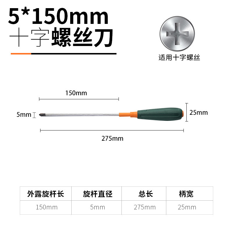 [cross] 6*300mm green handle screwdriver