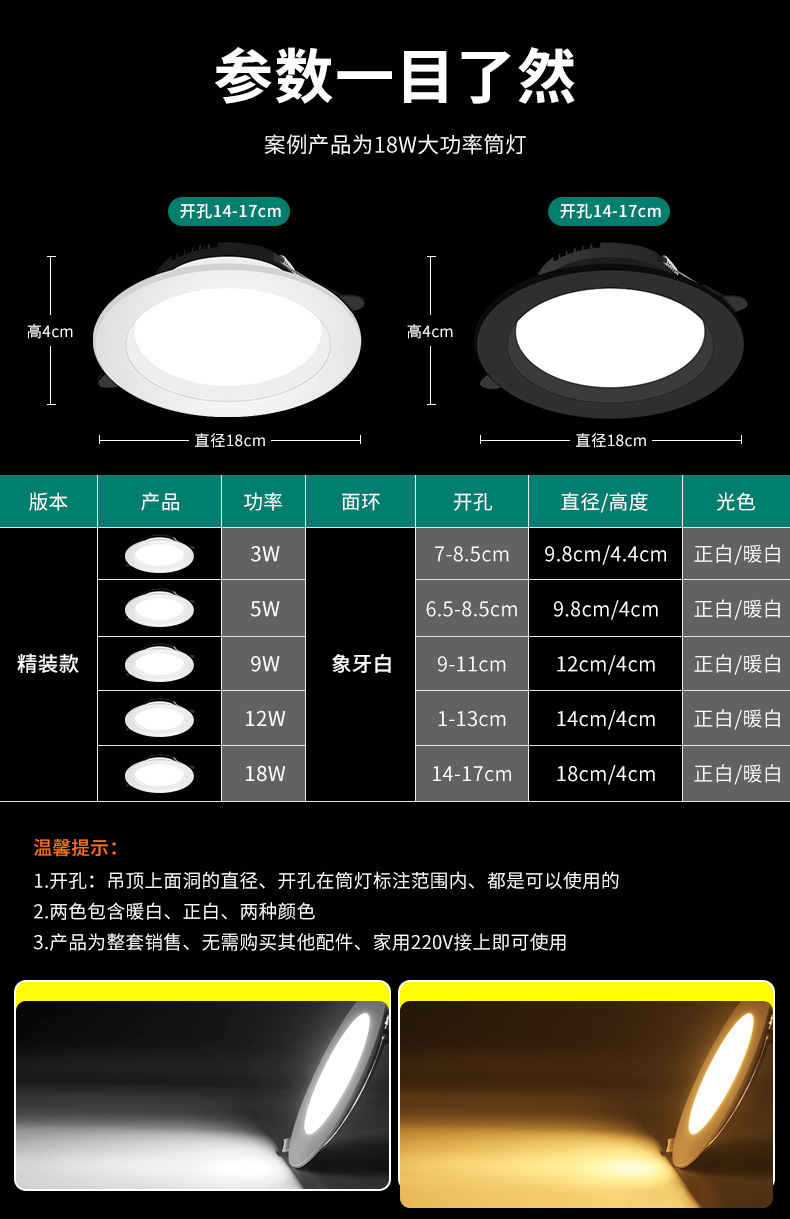 Embedded ceiling lights white spotlights wholesale engineering lighting commercial living room ultra-thin home bright LED downlight