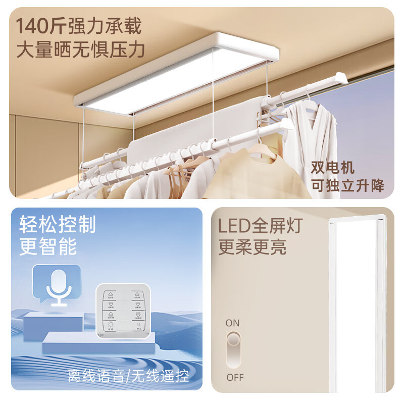 Comprehensive Large-Screen Intelligent Lifting Invisible Clothes Drying Rack Balcony Telescopic Household Double-Pole Embedded Electric Clothes Drying Rack