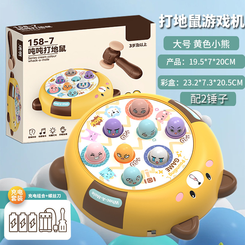 Cartoon puppy-yellow [1 hammer]] Cartoon fawn-blue [1 hammer]] Large electric cartoon bear-blue (spin/light/music) [2 hammers, no batteries]] Large electric cartoon bear-yellow (spin/light/music) [2 hammers, no batteries]] Large electric cartoon bear-blue (spin/light/music) [2 hammers 1 screwdriver 3 batteries]] Large electric cartoon bear-yellow (rotation/light/music) [2 hammers 1 screwdriver 3 batteries]] Large electric cartoon bear-blue (spin/light/music) [2 hammers 1 screwdriver charger rechargeable battery]] Large electric cartoon bear-yellow (rotation/light/music) [2 hammers 1 screwdriver charger rechargeable battery]]